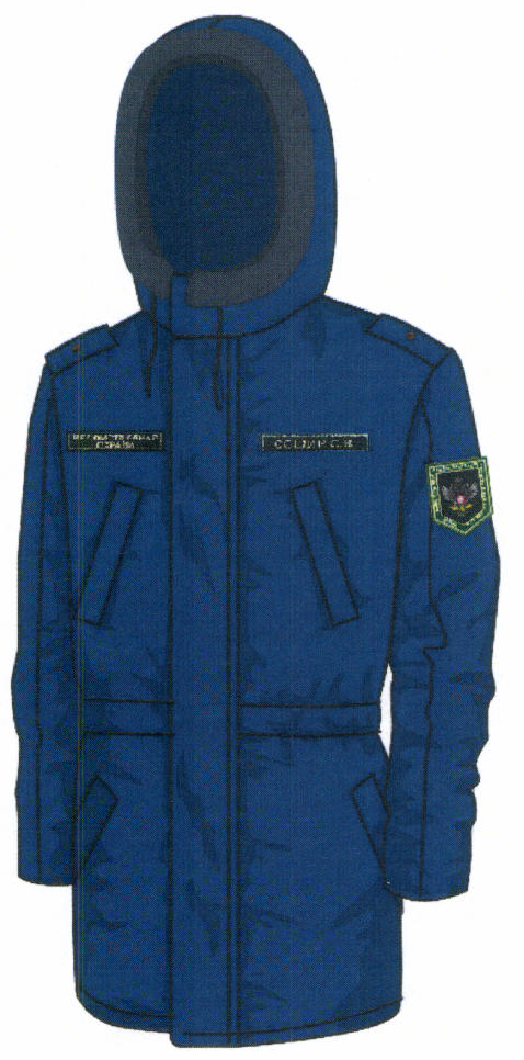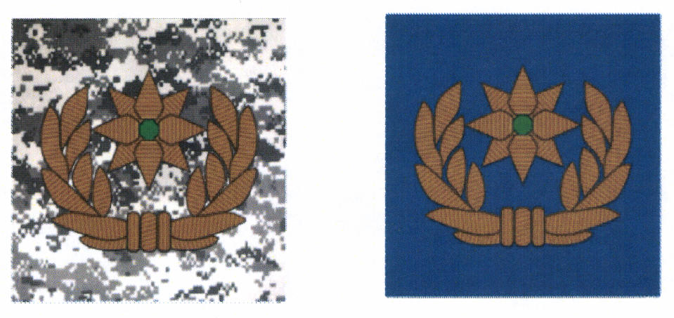 нагрудный знак для высшего состава, вышитый канителью золотистого цвета на тканевом поле, или для старшего состава - вышитый шелковой нитью золотистого цвета на тканевом основании. Нашивается на уровне груди на правой стороне куртки;