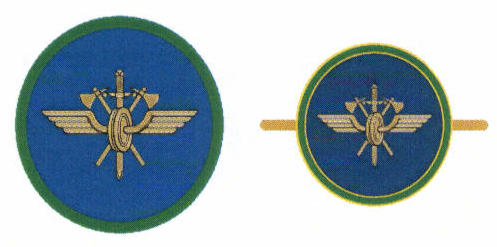 нагрудный знак: для среднего состава - вышитый шелковой нитью на тканевом основании; для младшего состава - штампованный из синтетического материала на тканевом основании или выполненный из металла с клямером. Нашивается или крепится на уровне груди на правой стороне костюма;