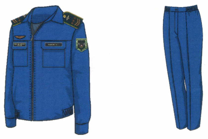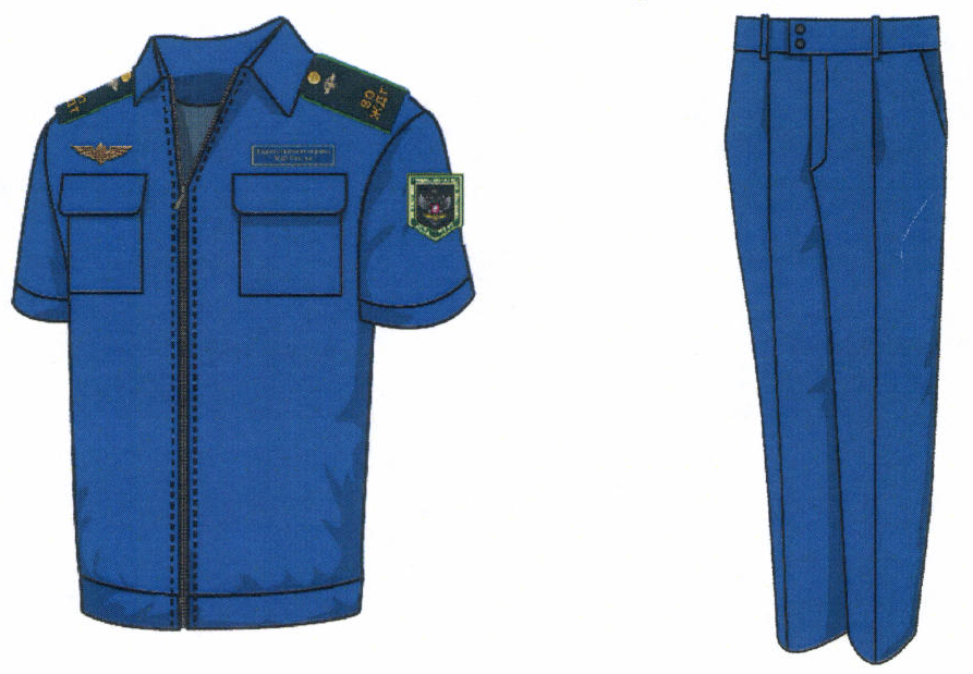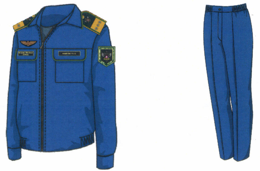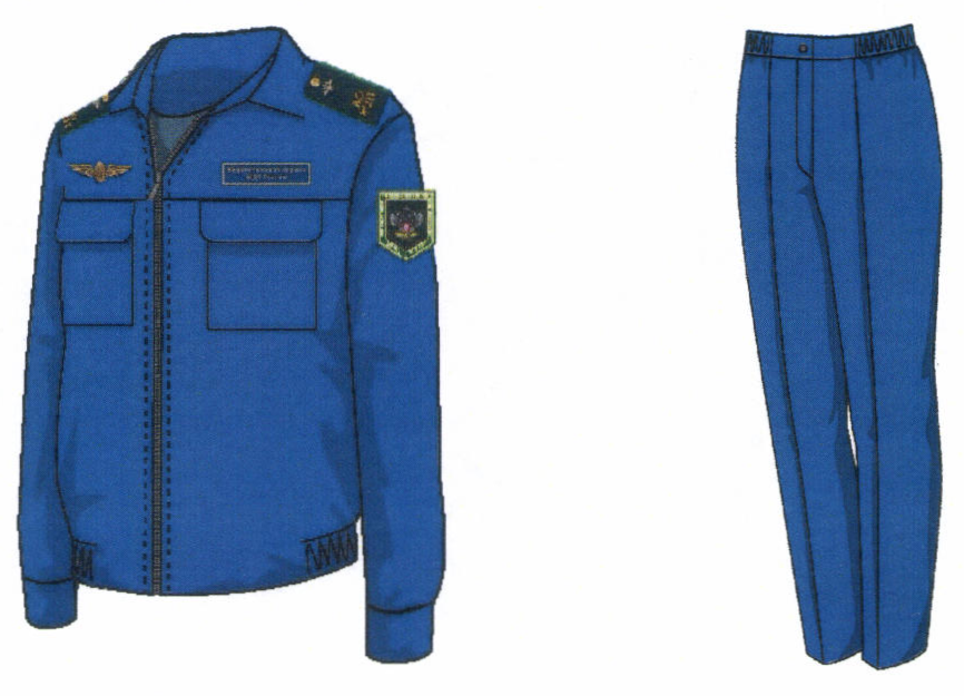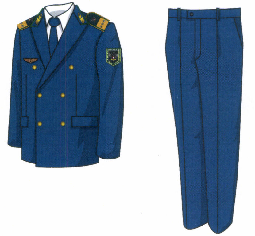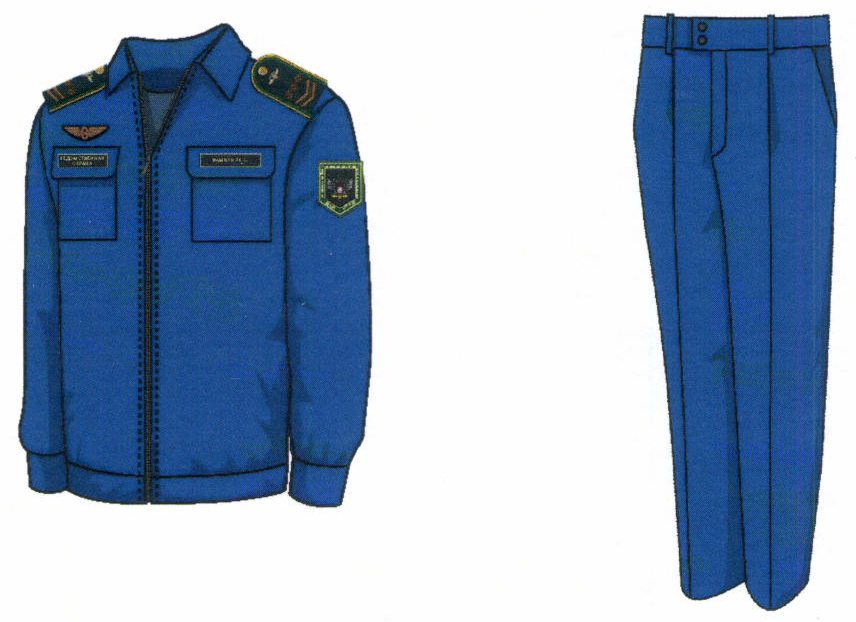 1. Костюм двубортный мужской для высшего состава состоит из пиджака и брюк, изготавливается из шерстяной ткани темно-синего цвета (рисунок № 1).