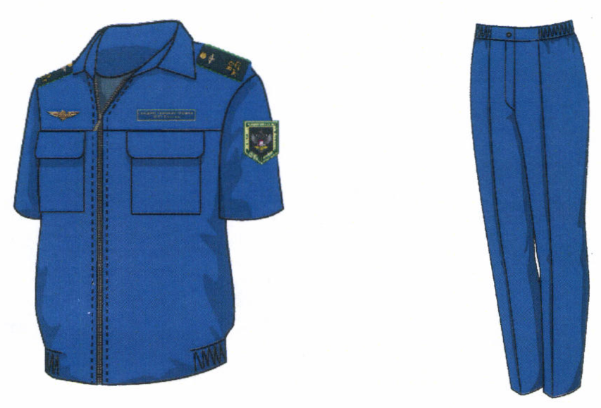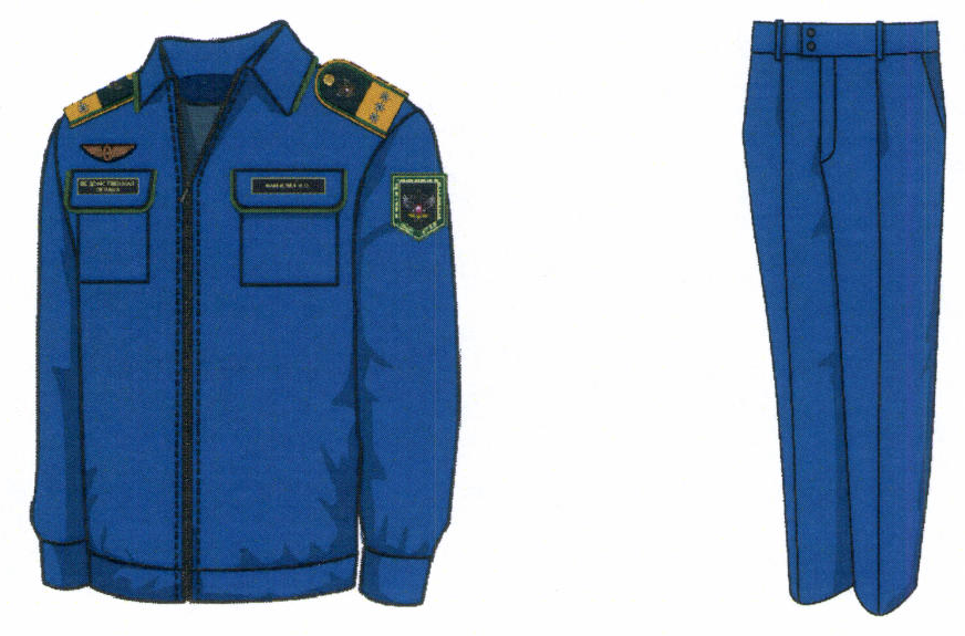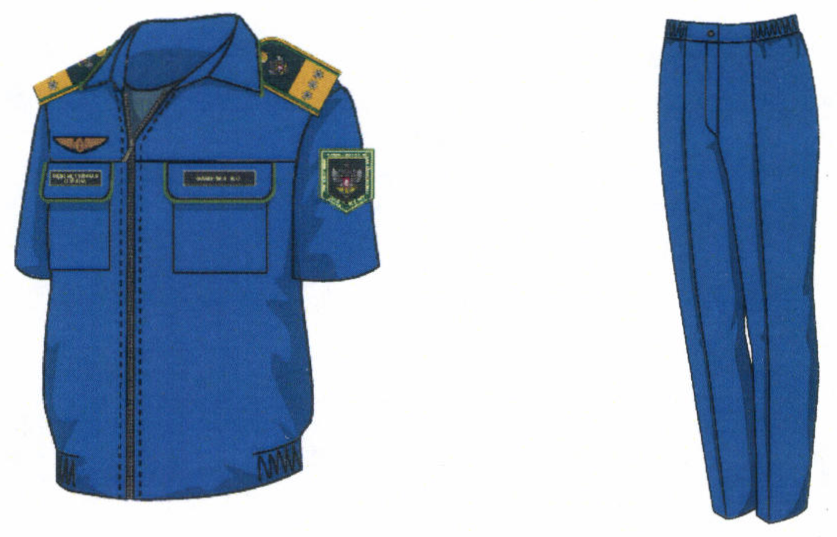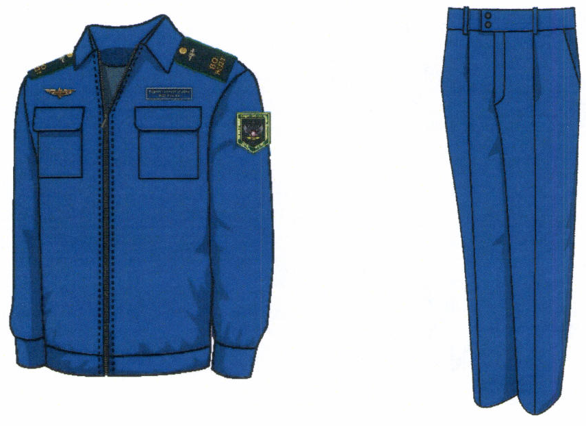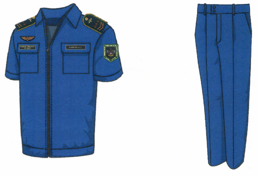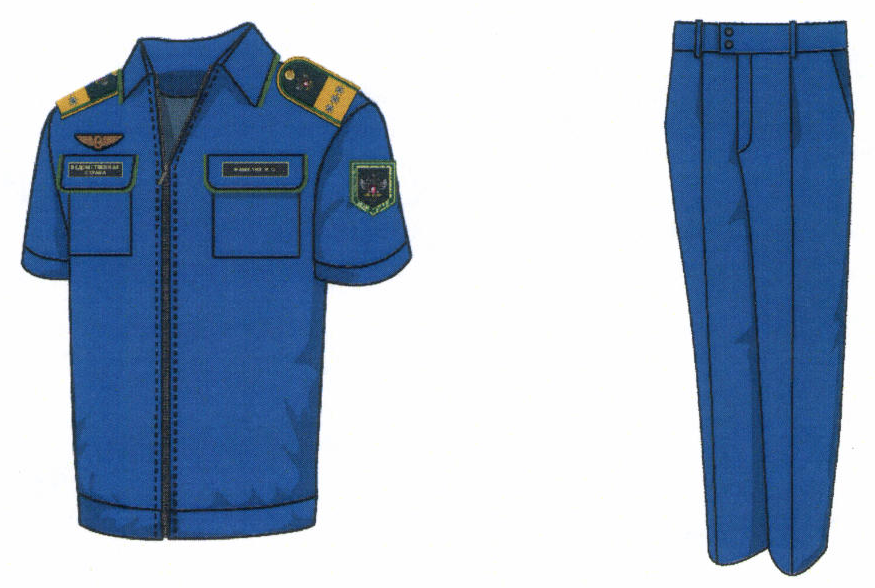 1. Костюм двубортный мужской для высшего состава состоит из пиджака и брюк, изготавливается из шерстяной ткани темно-синего цвета (рисунок № 1).