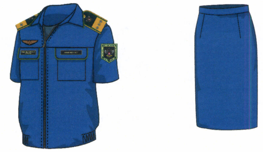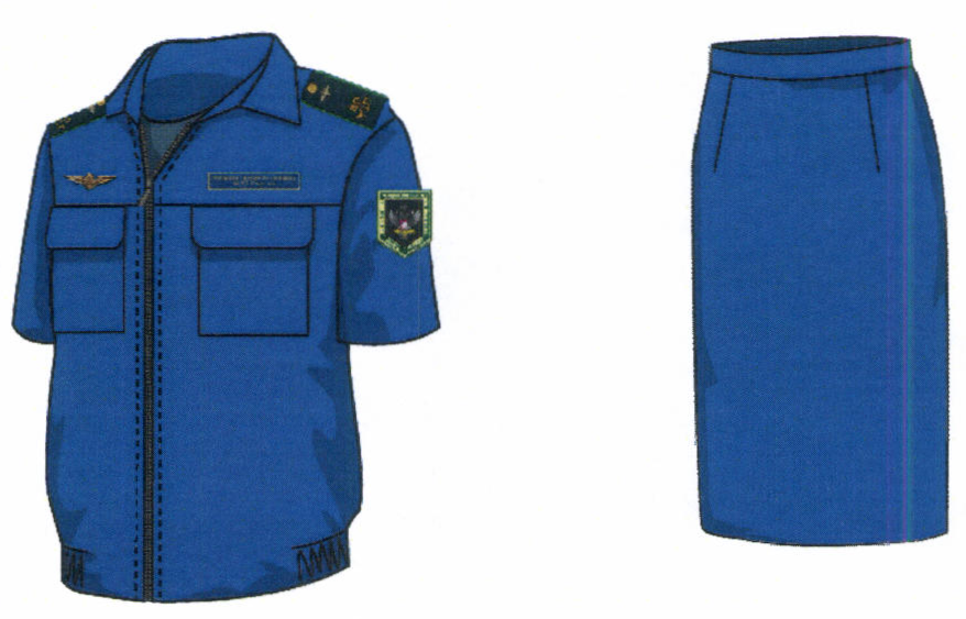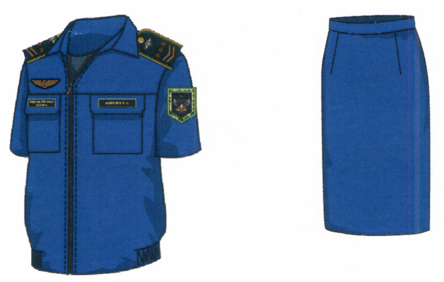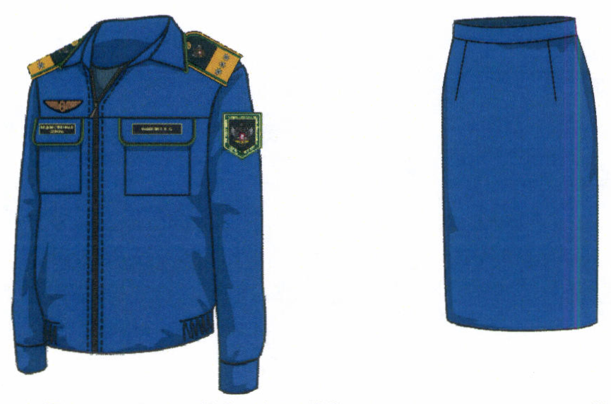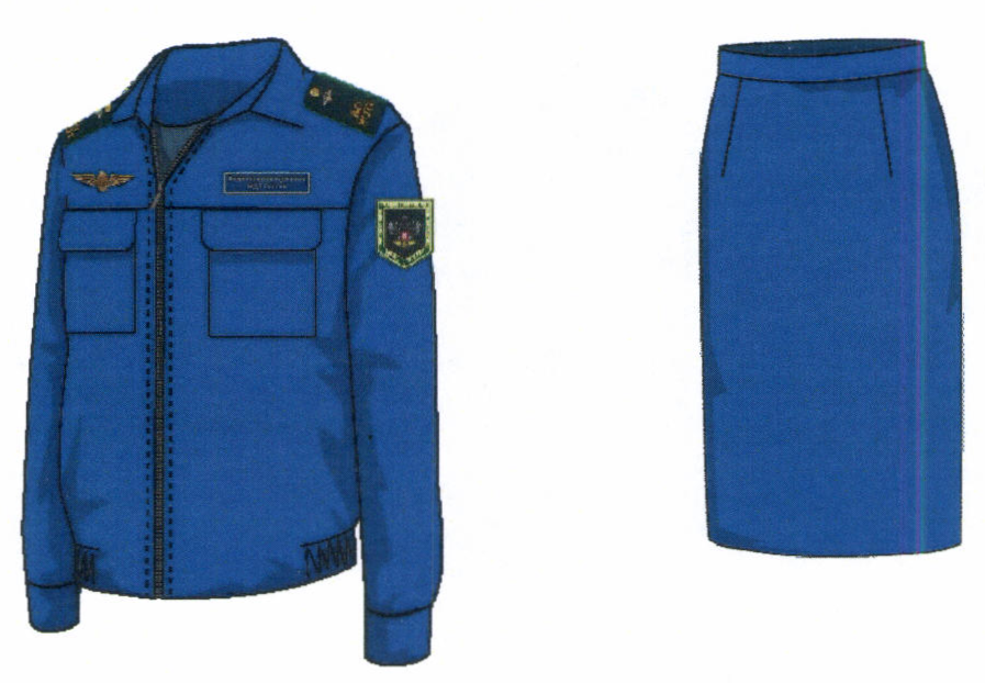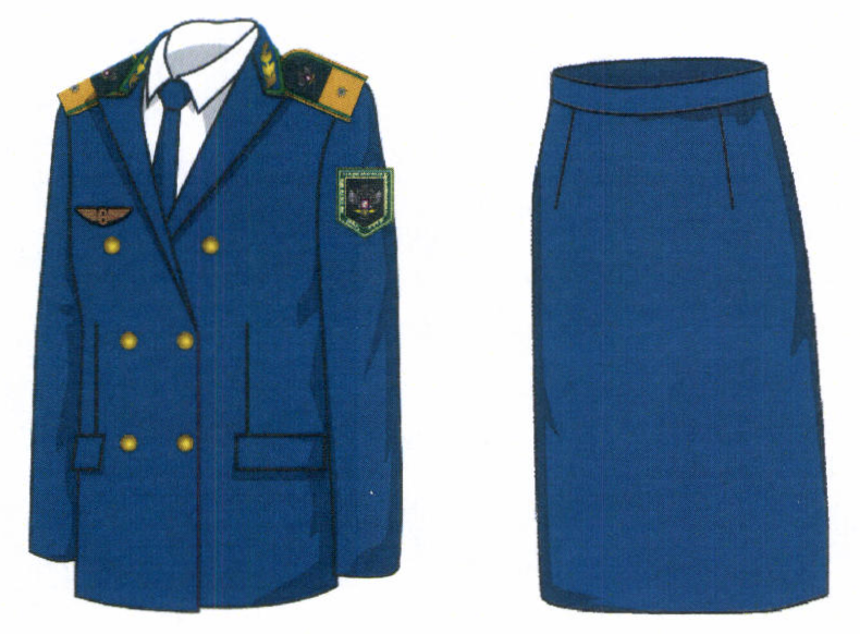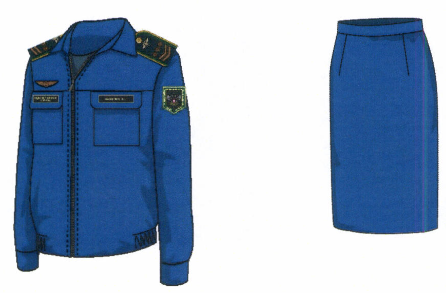 2. Костюм двубортный женский для высшего состава состоит из жакета и юбки, изготавливается из шерстяной ткани темно-синего цвета (рисунок № 2).