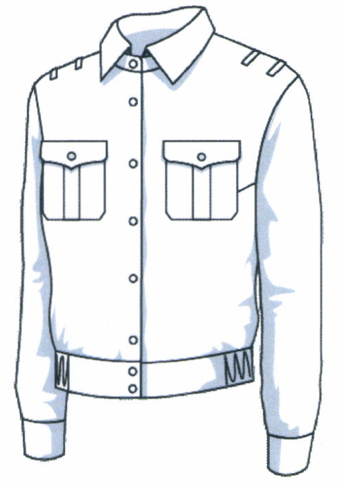 Воротник - стойка, застегивается на одну пуговицу для форменной одежды (малую).