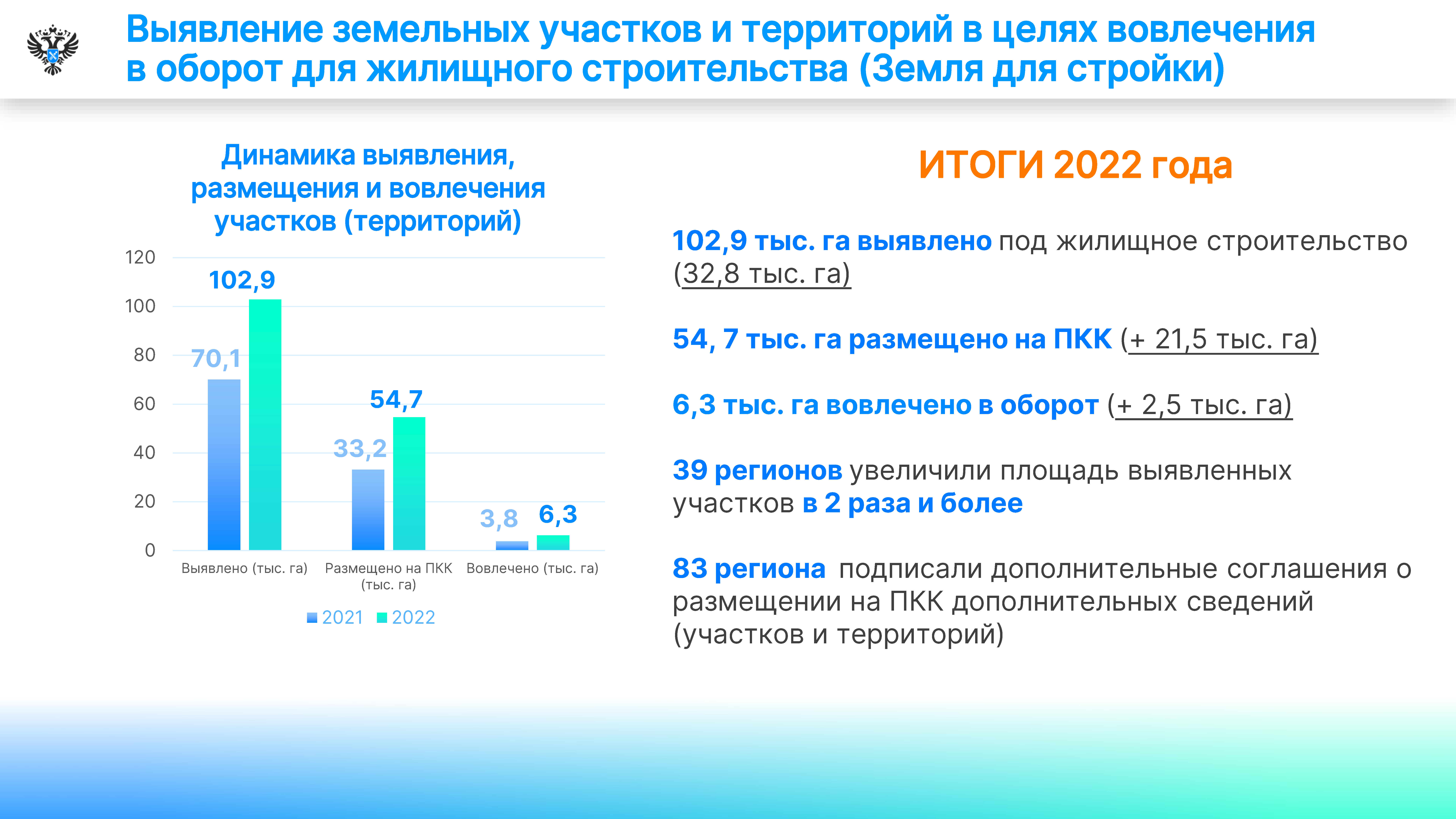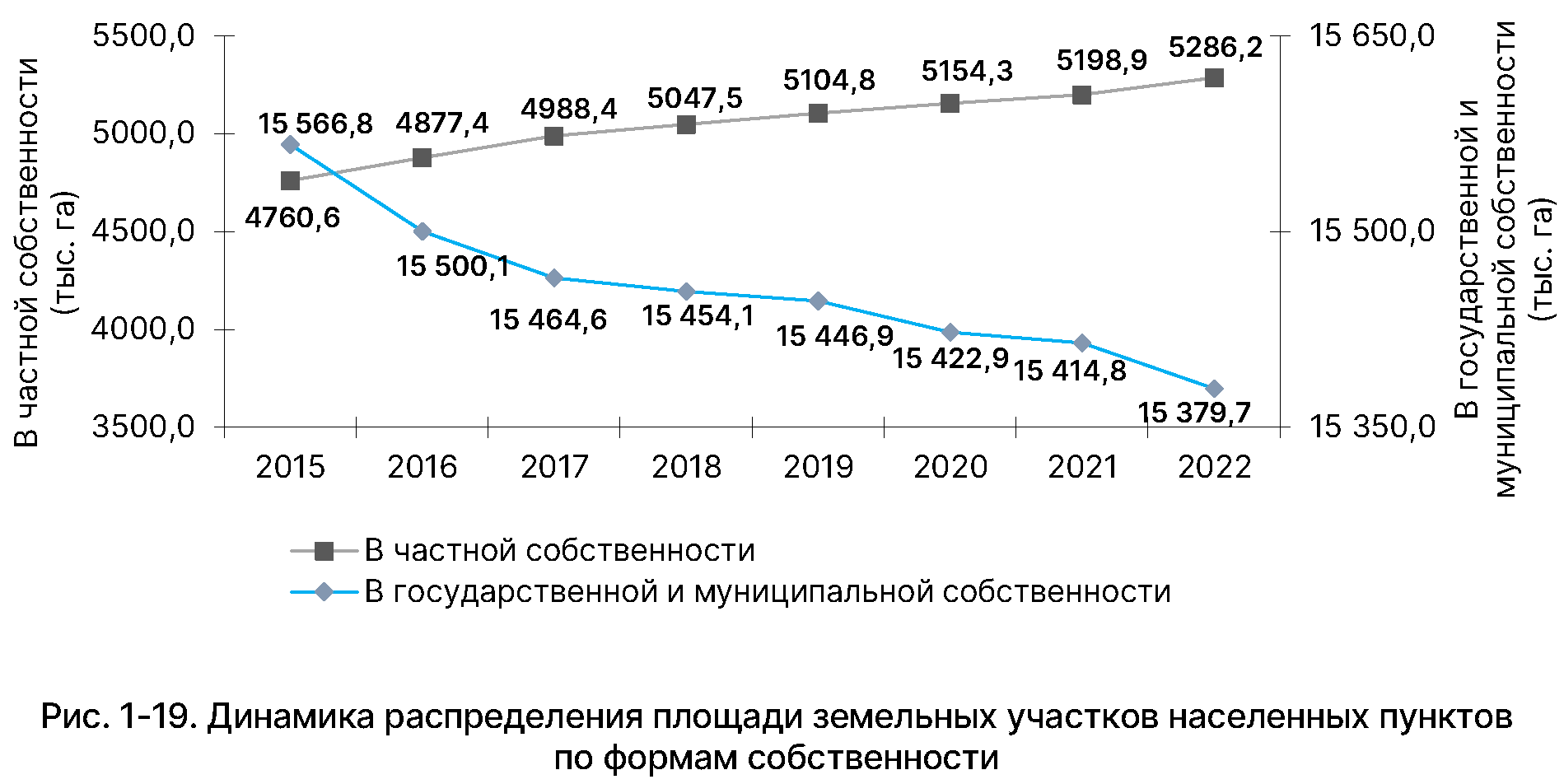 Анализ данных, полученных в результате государственного статистического наблюдения за земельными ресурсами, и докладов о состоянии и использовании земель в субъектах Российской Федерации показал, что в 2022 году значительные площади земель вовлечены в гражданский оборот, а также продолжались процессы установления (изменения) границ населенных пунктов.