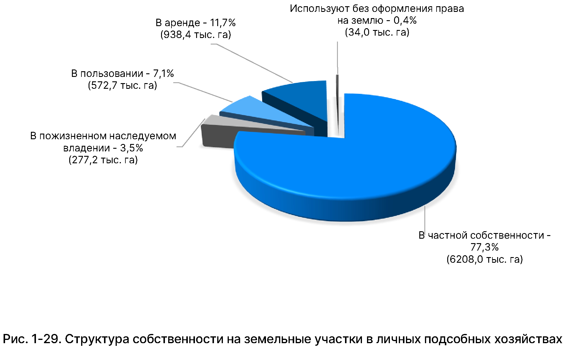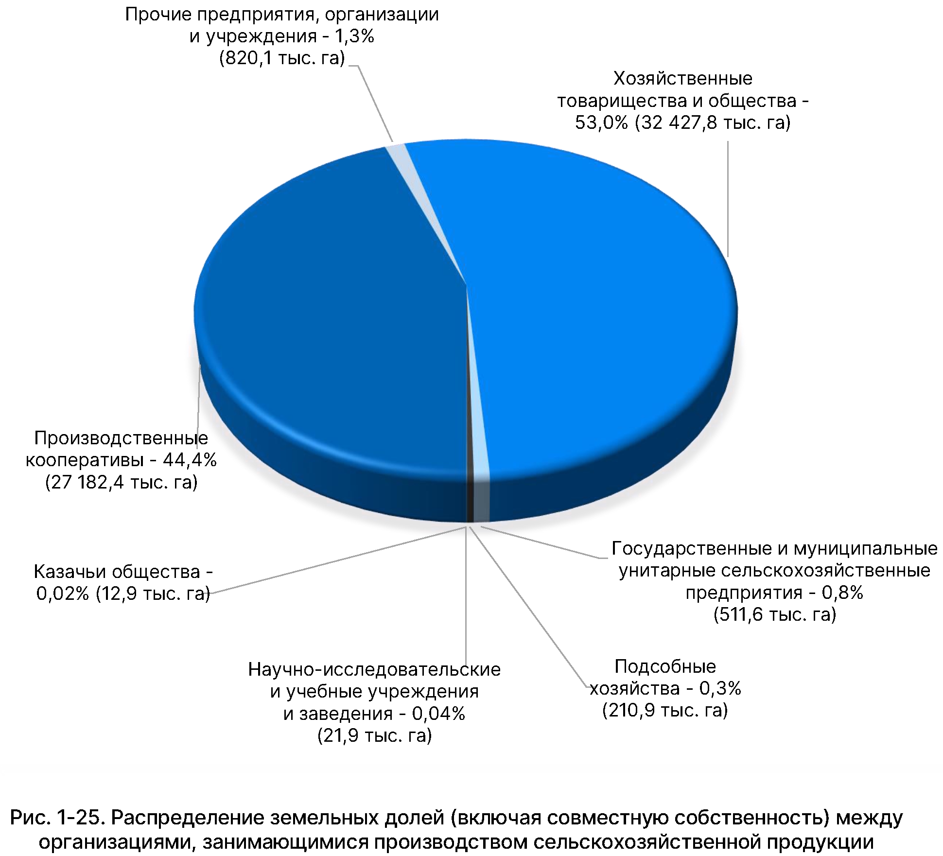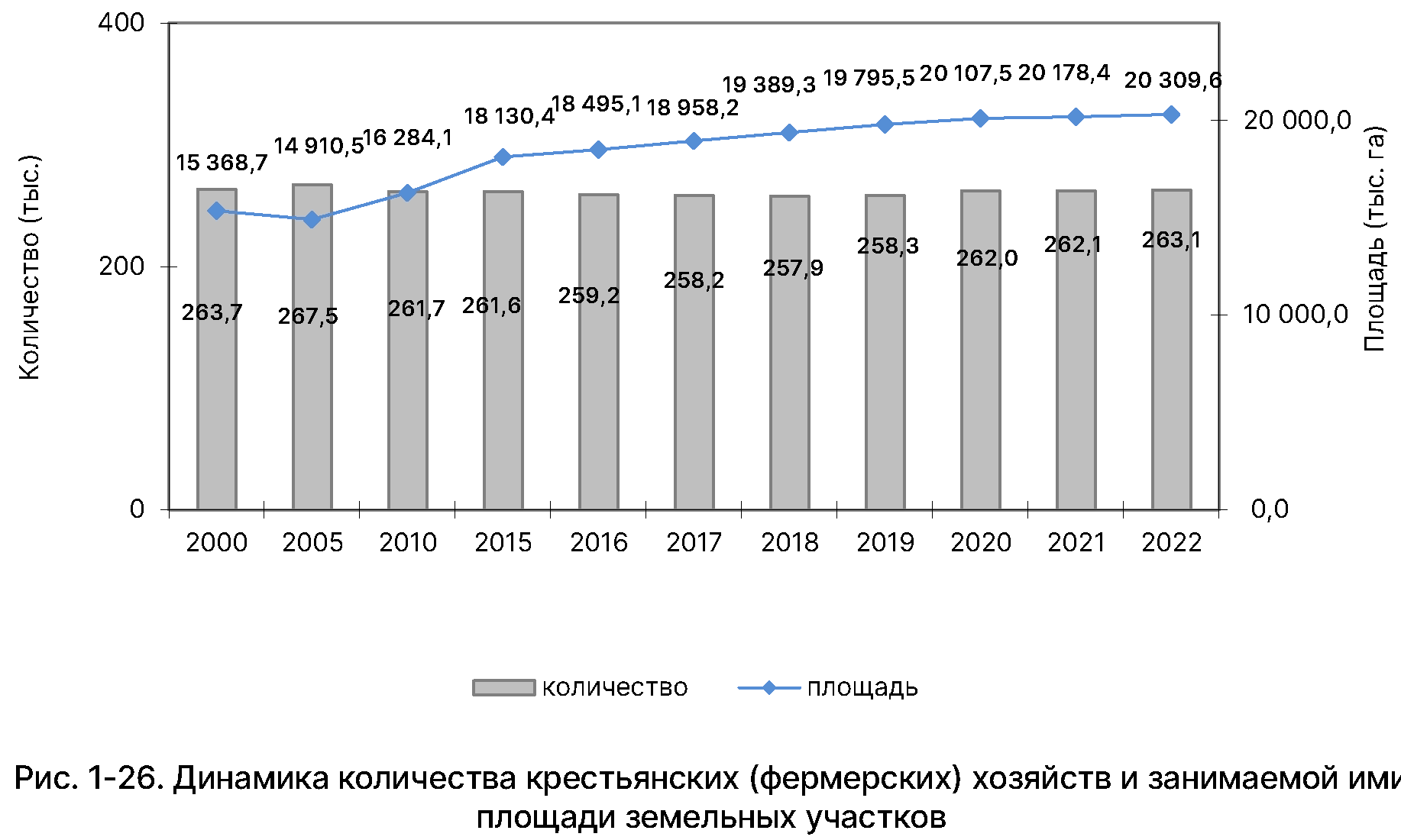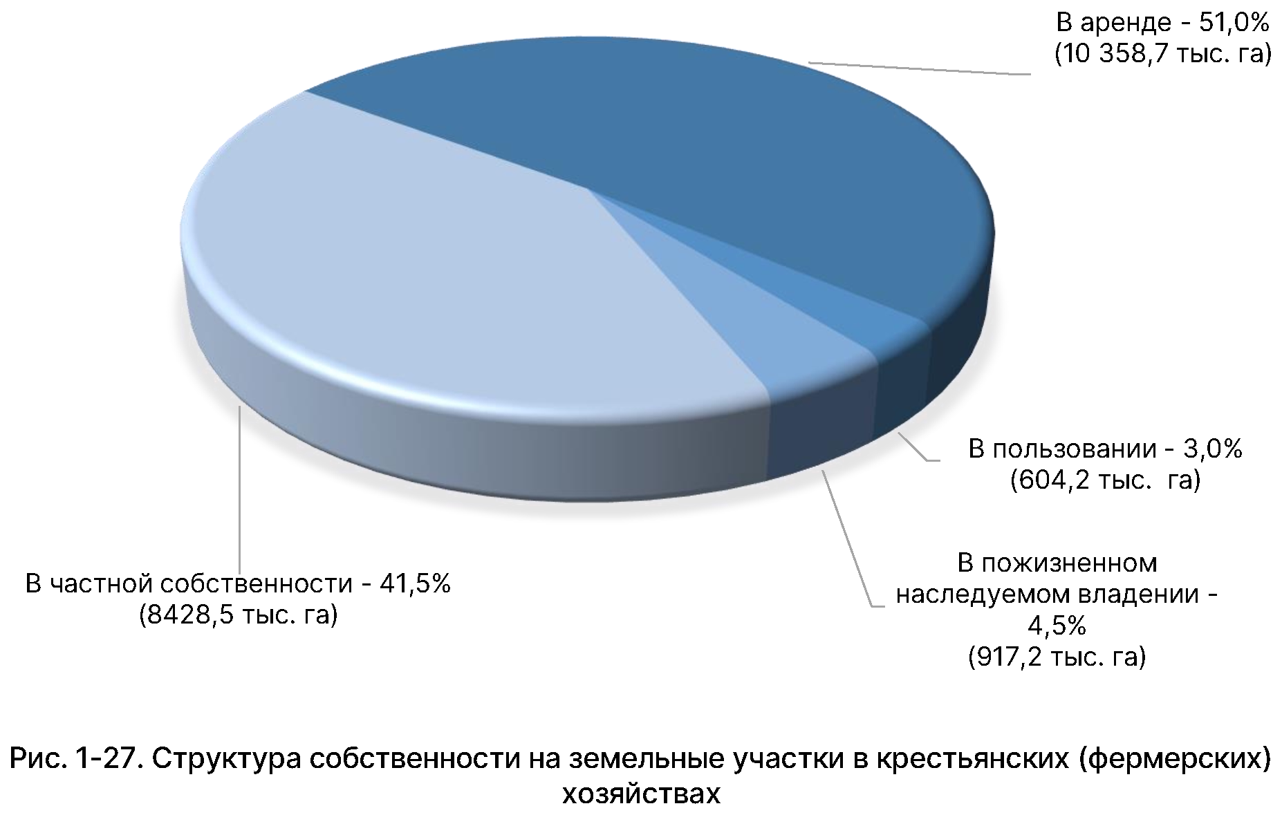 На 1 января 2023 года площадь земель сельскохозяйственного назначения составила 379 134,7 тыс. га. В сравнении с предшествующим годом площадь категории земель сельскохозяйственного назначения в составе земельного фонда Российской Федерации уменьшилась на 543,7 тыс. га.