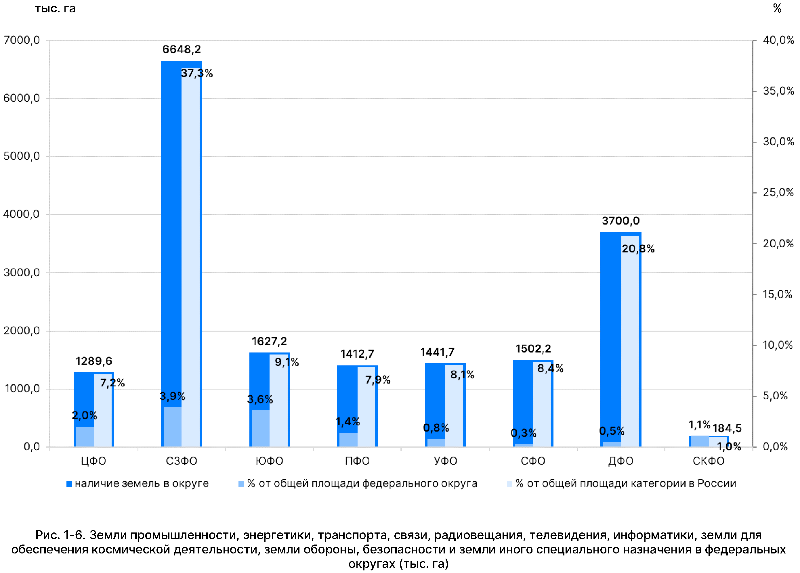 - земли промышленности, энергетики, транспорта, связи, радиовещания, телевидения, информатики, земли для обеспечения космической деятельности, земли обороны, безопасности и земли иного специального назначения;