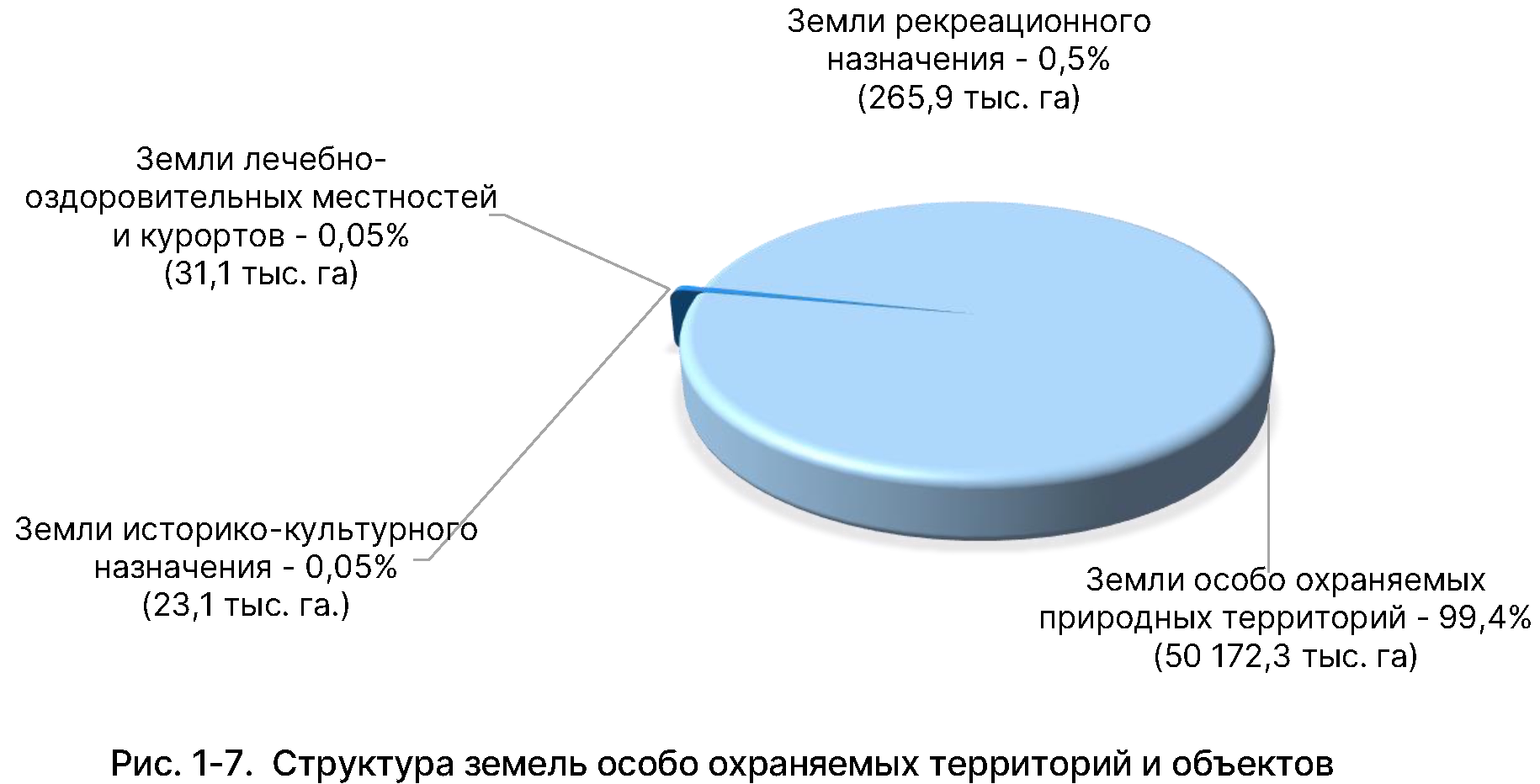 | 7 | Земли, занятые особо охраняемыми территориями и объектами, рекреационные | 1240,2 | 6,0 |