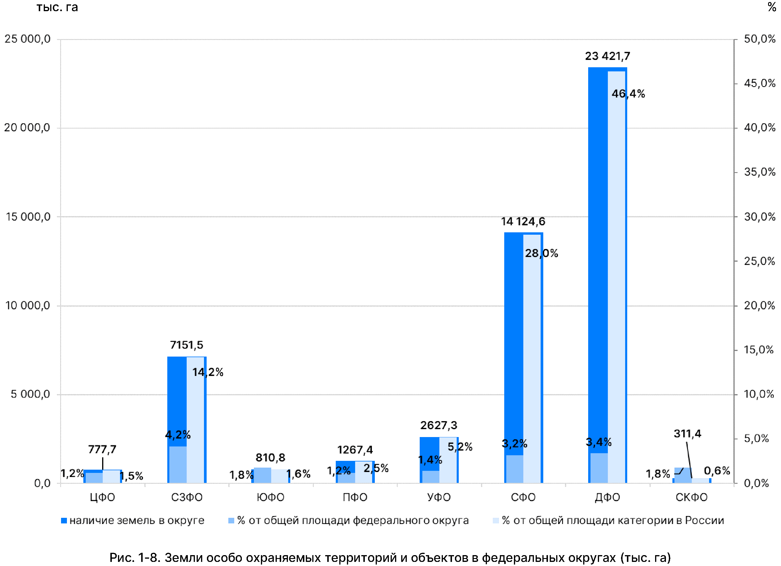 Сведения о наличии и распределении земельного фонда Российской Федерации в разрезе субъектов содержат характеристики земель 85 субъектов Российской Федерации без учета площади земель Донецкой Народной Республики, Луганской Народной Республики, Запорожской и Херсонской областей (рисунок 1-1).