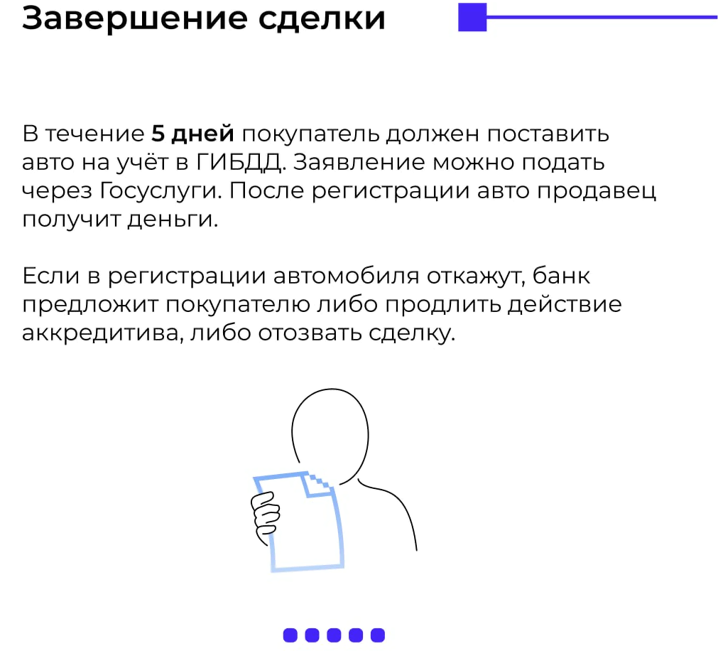 Сервис Госуслуг по купле-продаже автомобиля обновился. Теперь с его помощью можно не только заключить электронный договор, но и совершить платёж через аккредитив. В таком случае банк «заморозит» деньги покупателя на специальном счёте. Продавец получит их после подтверждения регистрации авто в ГИБДД.