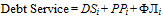 Debt Service - показатель, равный сумме выплаченного основного долга и процентов, а также расходов по финансовому лизингу, рассчитываемый по формуле: