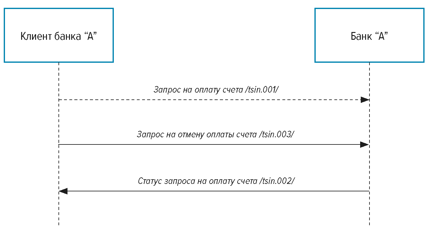 | Запрос отмены ранее отправленного запроса на оплату счета | Инициатор запроса на оплату | Клиент Банка “А” |
