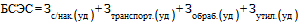 3. Базовая ставка экологического сбора (БСЭС) по группе товаров, упаковки на 1 тонну выпущенного товара, упаковки определяется на основе средних сумм затрат на раздельный сбор, накопление, транспортирование, обработку и утилизацию единицы массы изделия, утратившего свои потребительские свойства, а также удельных величин затрат на создание инфраструктуры, необходимой для осуществления указанных видов деятельности, по формуле: