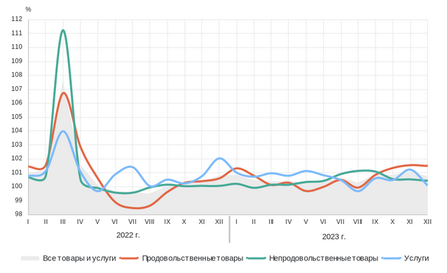 | непродовольственные товары | 100,42 | 105,96 | 104,16 | 100,05 | 112,70 | 115,20 |