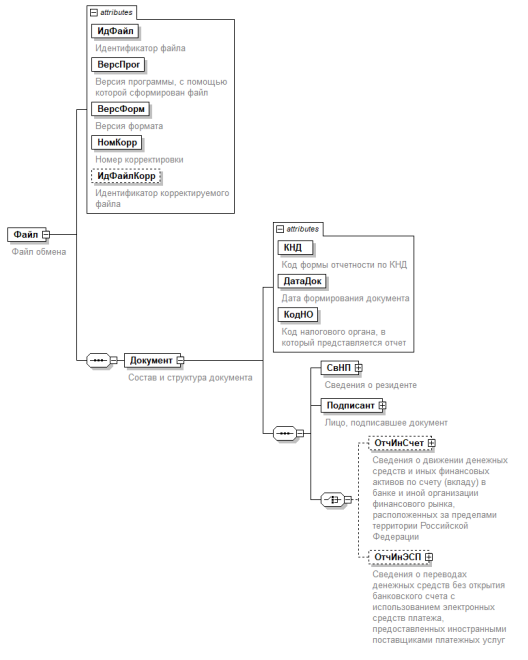 | Сведения о движении денежных средств по счету (вкладу) в банке или иной организации финансового рынка, расположенных за пределами территории Российской Федерации | СведДС | С | НМУ | Состав элемента представлен в таблице 4.13. Элемент является обязательным при отсутствии элемента <СведФА>. Элемент может быть заполнен при наличии элемента <СведФА> | |
