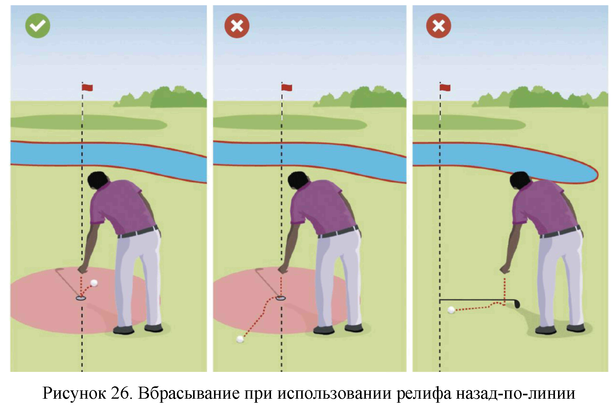 Спортсмену следует всегда предупреждать сотрудников гольф-поля, находящихся поблизости или впереди них, если он собирается выполнить удар, который может создать опасность для этих лиц.