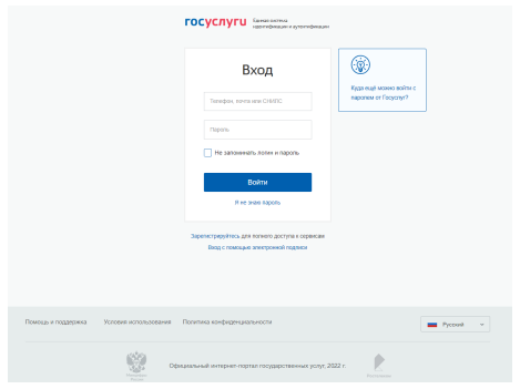 Введите логин и пароль от портала Госуслуг, нажмите на кнопку «Войти» (Рисунок 2).