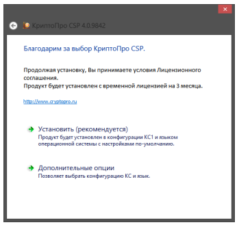 Перед установкой программы необходимо проверить, на какую версию КриптоПро выдана лицензия. Установите КриптоПро той версии, которая указана в лицензии. Дистрибутив программы СКЗИ КриптоПро CSP можно скачать с сайта производителя.