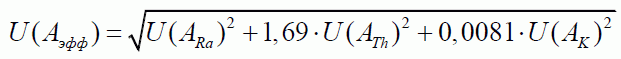 Для результата расчета эффективной удельной активности ПРН А эфф по формуле (2) суммарная неопределенность U(А эфф) рассчитывается по формуле (5):