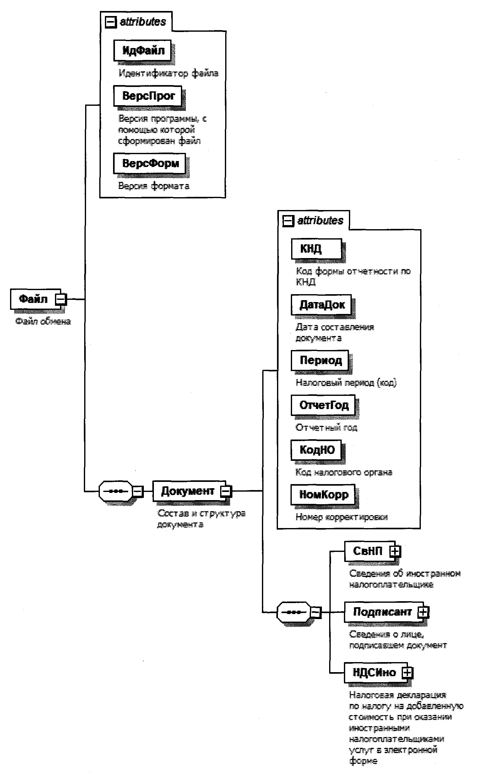 | Налоговая декларация по налогу на добавленную стоимость при оказании иностранными налогоплательщиками услуг в электронной форме | НДСИно | С | О | Состав элемента представлен в таблице 4.8 |