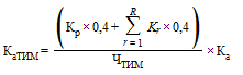 При одновременном применении нескольких коэффициентов, учитывающих снижение производительности труда, приведенных в таблицах 1, 3, 5 или 7 Приложения № 10 к Методике, результирующее значение коэффициента определяется путем суммирования дробных частей таких коэффициентов и единицы по следующей формуле: