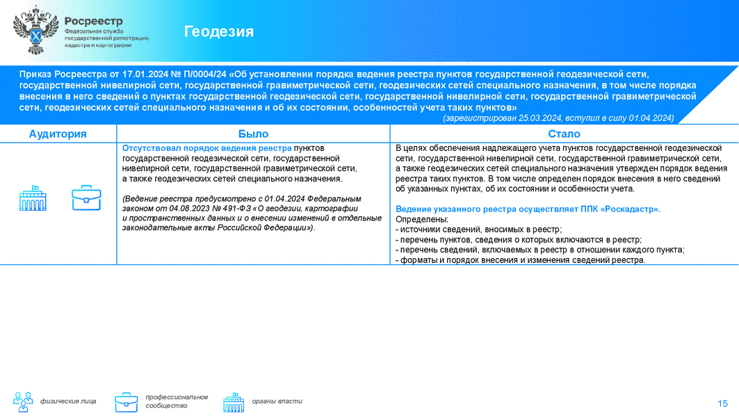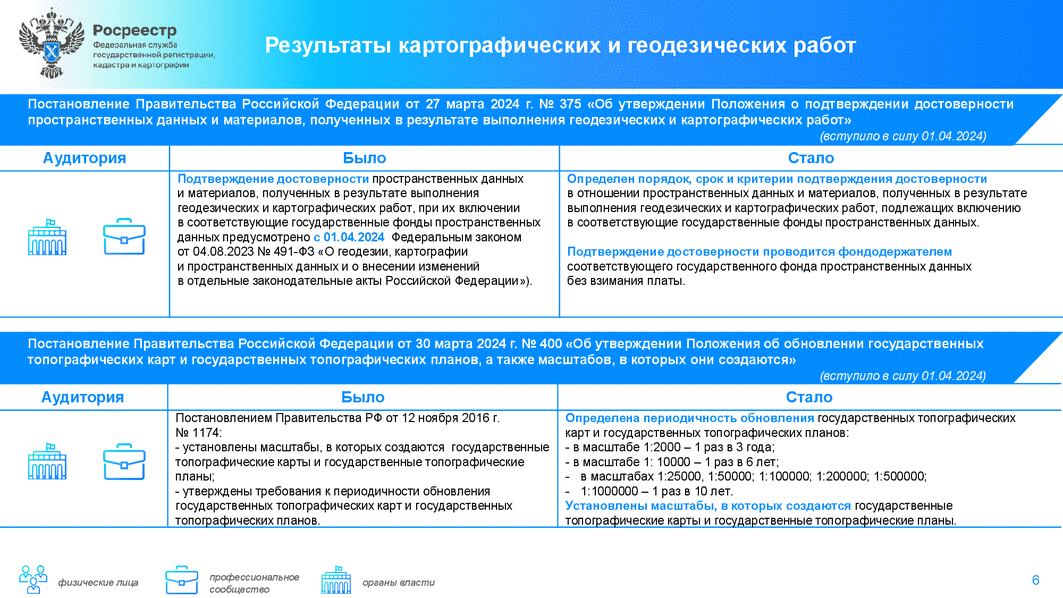 Также в дайджесте нашли своё отражение изменения в нормативных правовых актах, регулирующие отдельные вопросы в сферах геодезии, картографии и земельно-имущественных отношений. Так, в частности:
