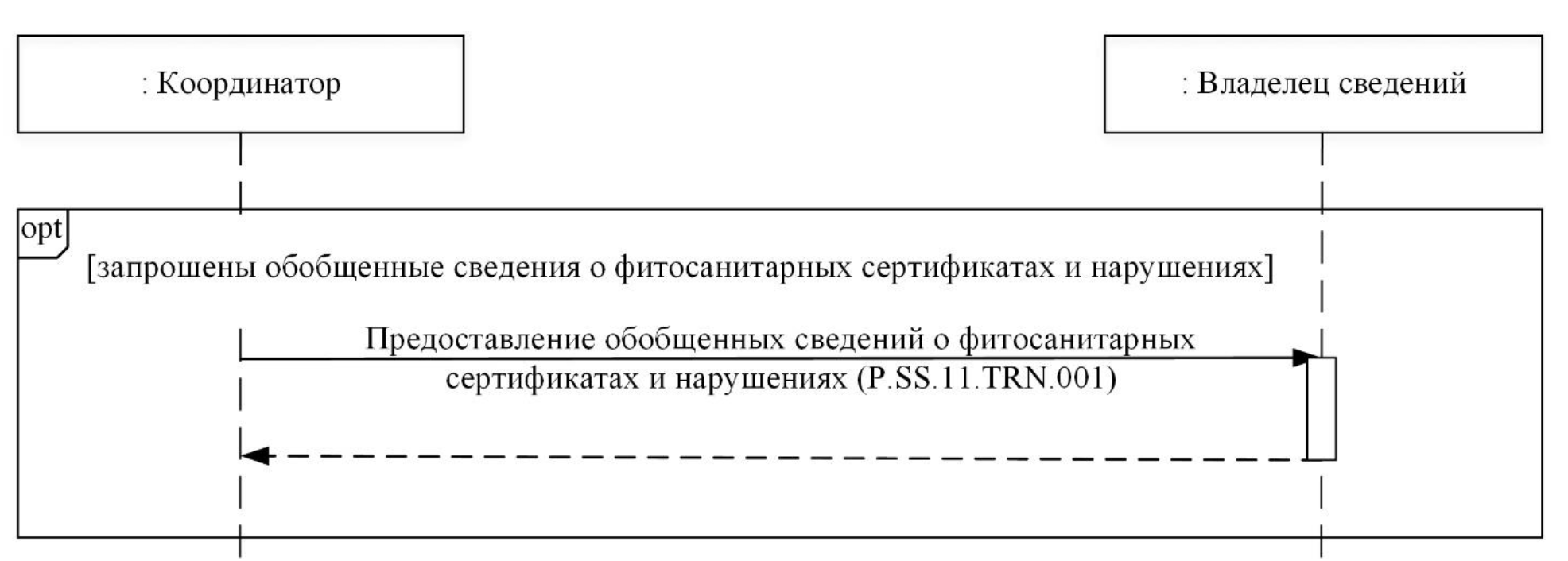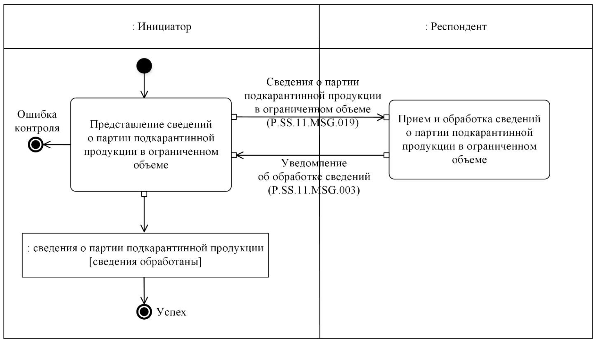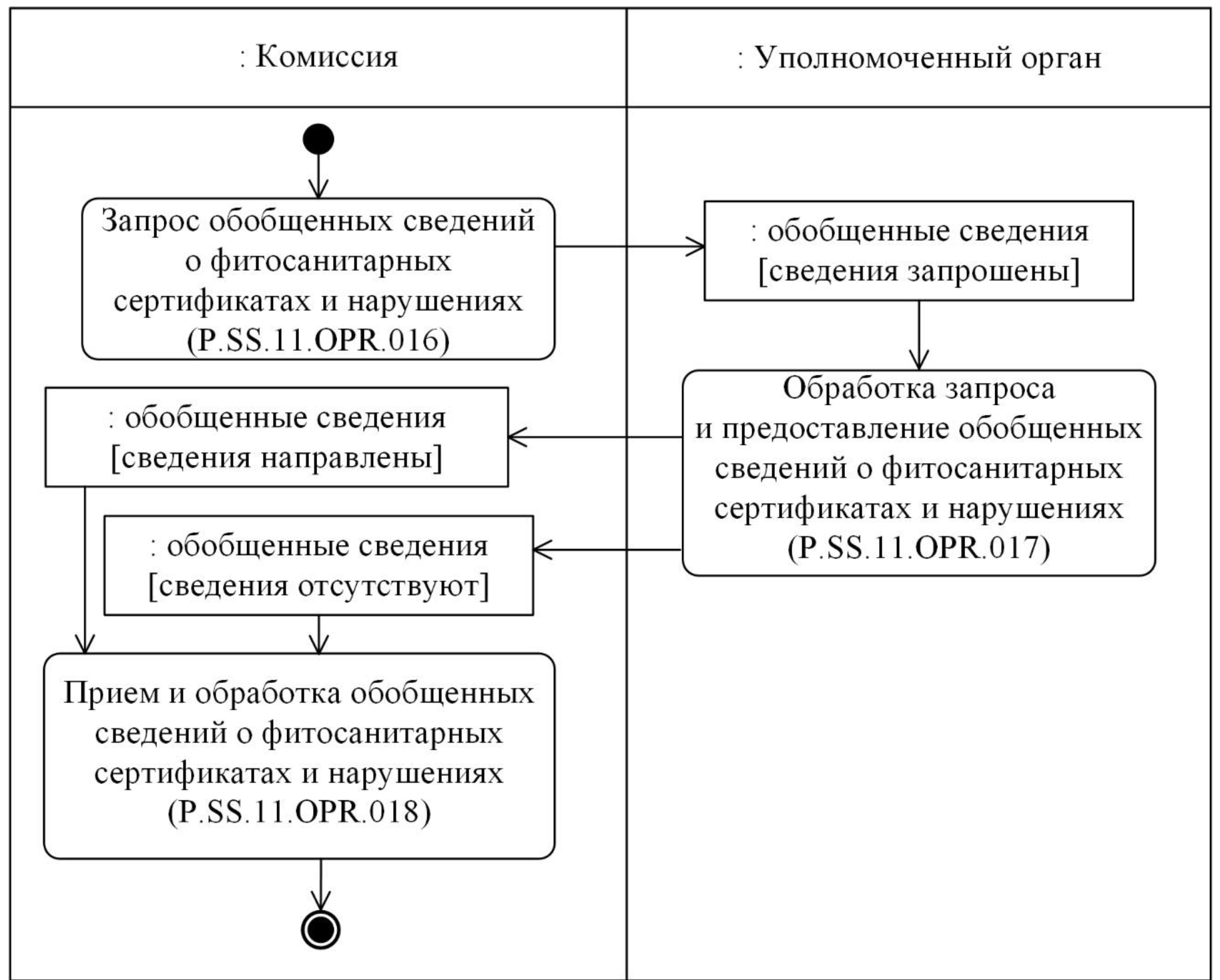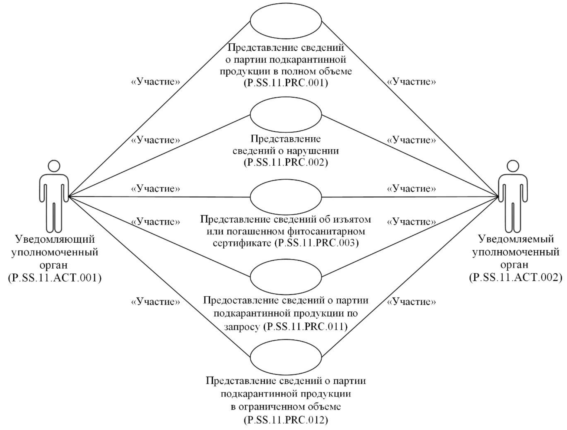 | P.SS.11.ACT.001 | уведомляющий уполномоченный орган | уполномоченный орган государства - члена, который осуществляет: представление в уведомляемый уполномоченный орган сведений о партиях подкарантинной продукции, перемещаемых между территориями государств - членов, включая информацию о выданных (в том числе на замену) фитосанитарных сертификатах, а также информацию согласно Порядку прослеживаемости, в том числе сведения об идентификационных номерах партий подкарантинной продукции, подлежащих прослеживаемости; представление в уведомляемый уполномоченный орган сведений о партиях подкарантинной продукции, ввозимых на таможенную территорию Союза из третьих стран, включая информацию об актах карантинного фитосанитарного контроля (надзора), а также информацию о фитосанитарных сертификатах в электронном виде и согласно Порядку прослеживаемости (при наличии), в том числе сведения об идентификационных номерах партий подкарантинной продукции, подлежащих прослеживаемости; получение сведений об изъятых или погашенных фитосанитарных сертификатах от уведомляемого уполномоченного органа; получение сведений о нарушениях от уведомляемого уполномоченного органа; предоставление по запросу в уведомляемый уполномоченный орган сведений о партиях подкарантинной продукции, в том числе: - сведений о факте выдачи или невыдачи фитосанитарного сертификата при перемещении партии подкарантинной продукции между территориями государств-членов; - сведений о выданных (в том числе на замену) фитосанитарных сертификатах, оформленных на партии подкарантинной продукции, вывозимые с таможенной территории Союза в третьи страны через территорию других государств-членов; - сведений о фитосанитарных сертификатах, выданных (в том числе на замену) уполномоченными органами государств-членов на партии подкарантинной продукции, перемещаемые между территориями государств-членов через территории других государств-членов; - сведений о фитосанитарных сертификатах, выданных (в том числе на замену) уполномоченными органами третьих стран в электронном виде на партии подкарантинной продукции, ввозимые на таможенную территорию Союза из третьих стран через территории других государств-членов |