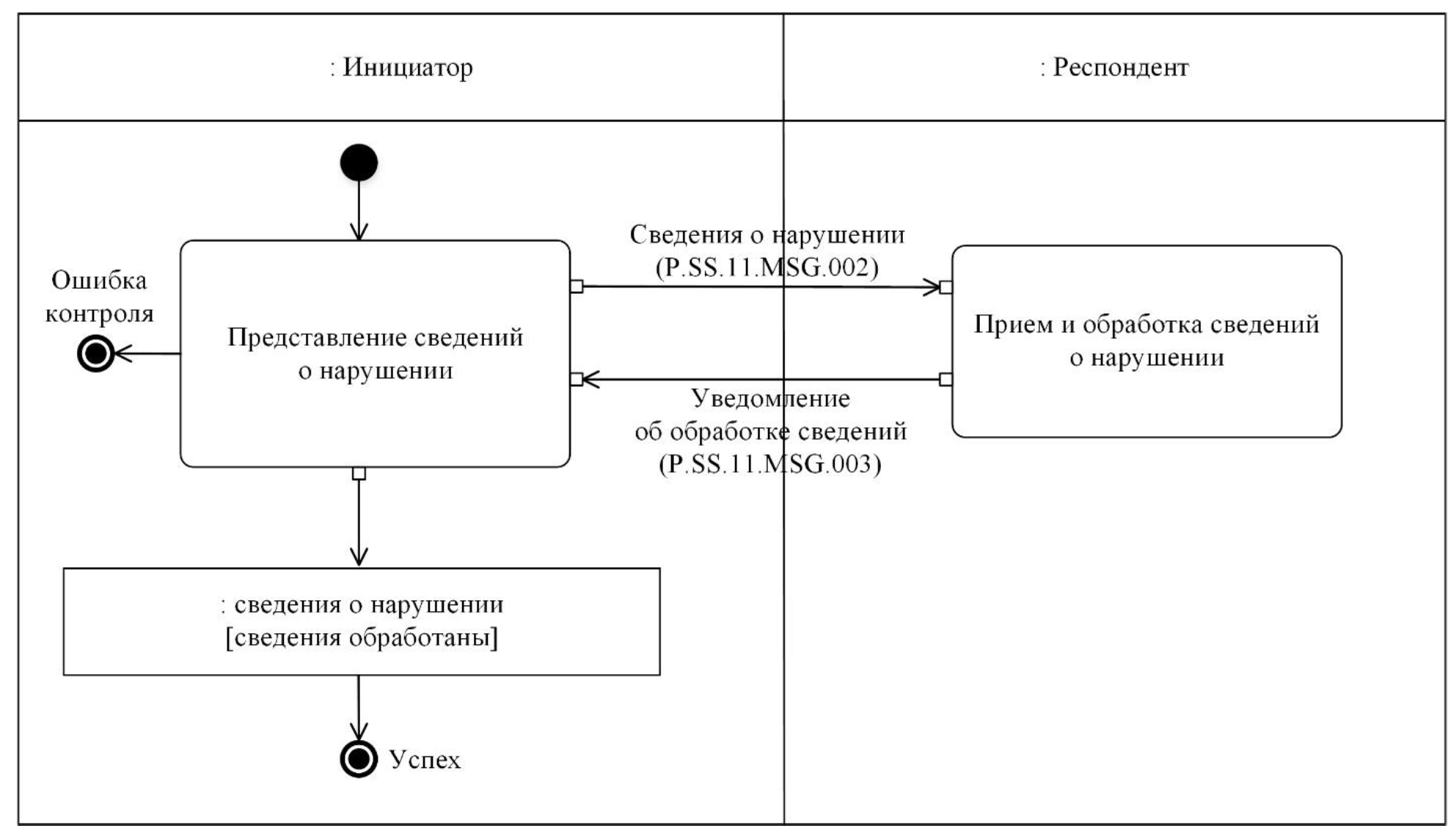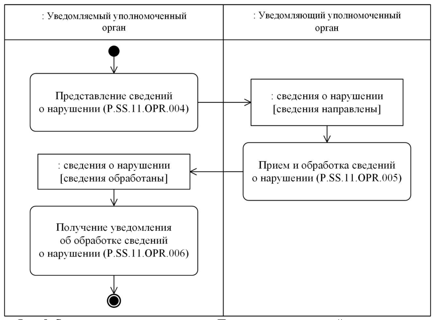 При выполнении процедуры представления сведений о нарушении уведомляемый уполномоченный орган формирует и направляет уведомляющему уполномоченному органу сведения о нарушении, таком как: