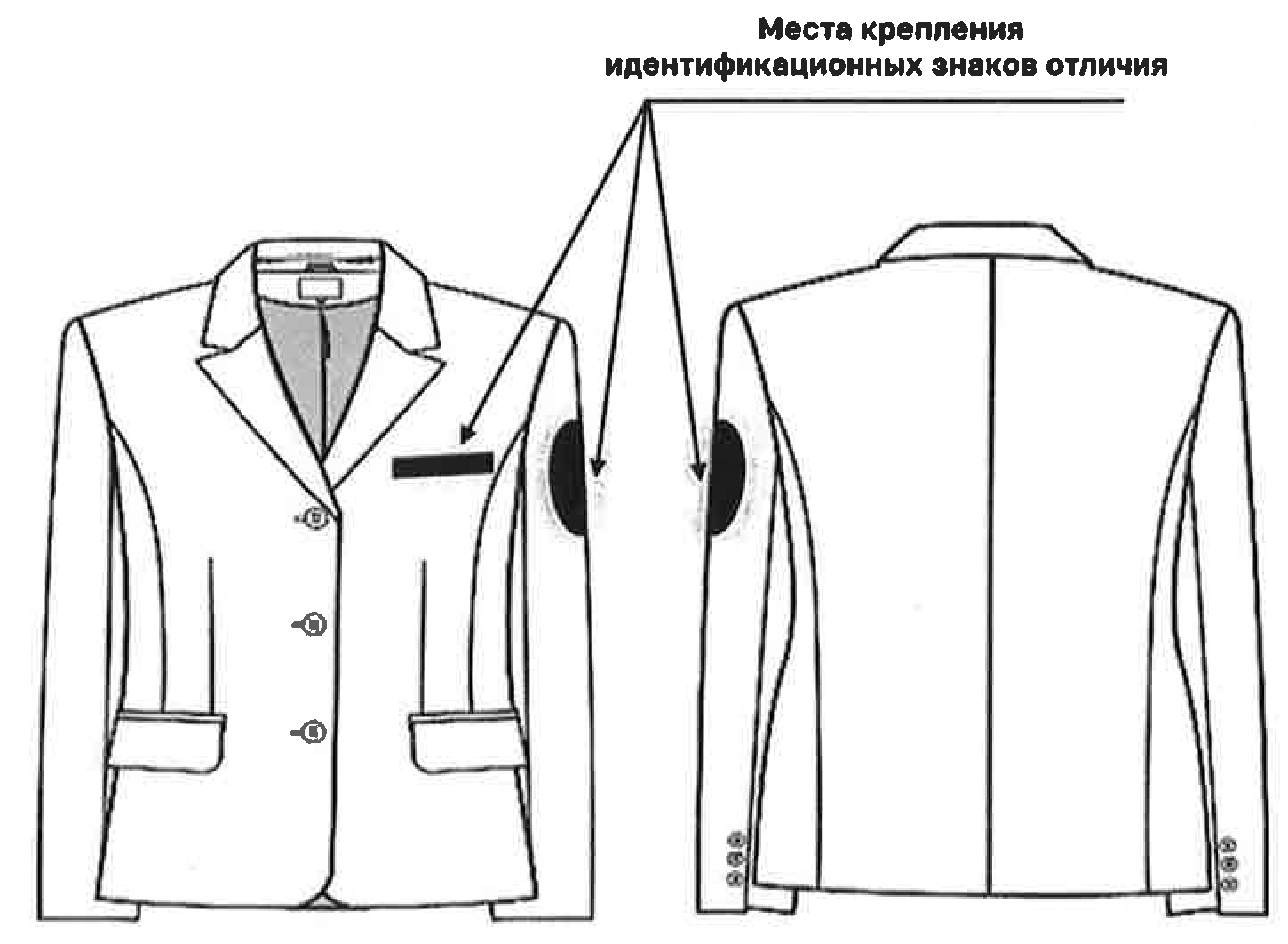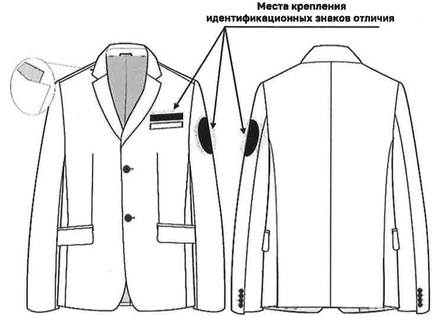 нашивка нагрудная - на левой полочке пиджака.