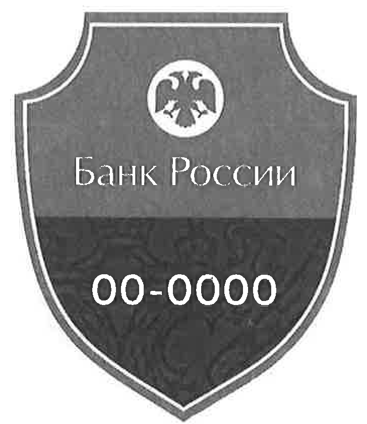 Основание нагрудного знака (жетона) имеет обрамление желто-золотистого цвета шириной 10 мм. В верхней части обрамления размещена надпись темно-синего цвета "БАНК РОССИИ". В центральной части нагрудного знака (жетона) на фоне с текстурой "газетная бумага" размещены логотип Объединения "РОСИНКАС" в виде крылатой рыси с мечом темно-синего цвета и стилизованная надпись "РОСИНКАС" (буква "И" выполнена в цветах Государственного флага Российской Федерации). Под надписью "РОСИНКАС" в прямоугольнике темно-синего цвета размером 43x8 мм размещена надпись "ОХРАНА", выполненная в белом цвете.