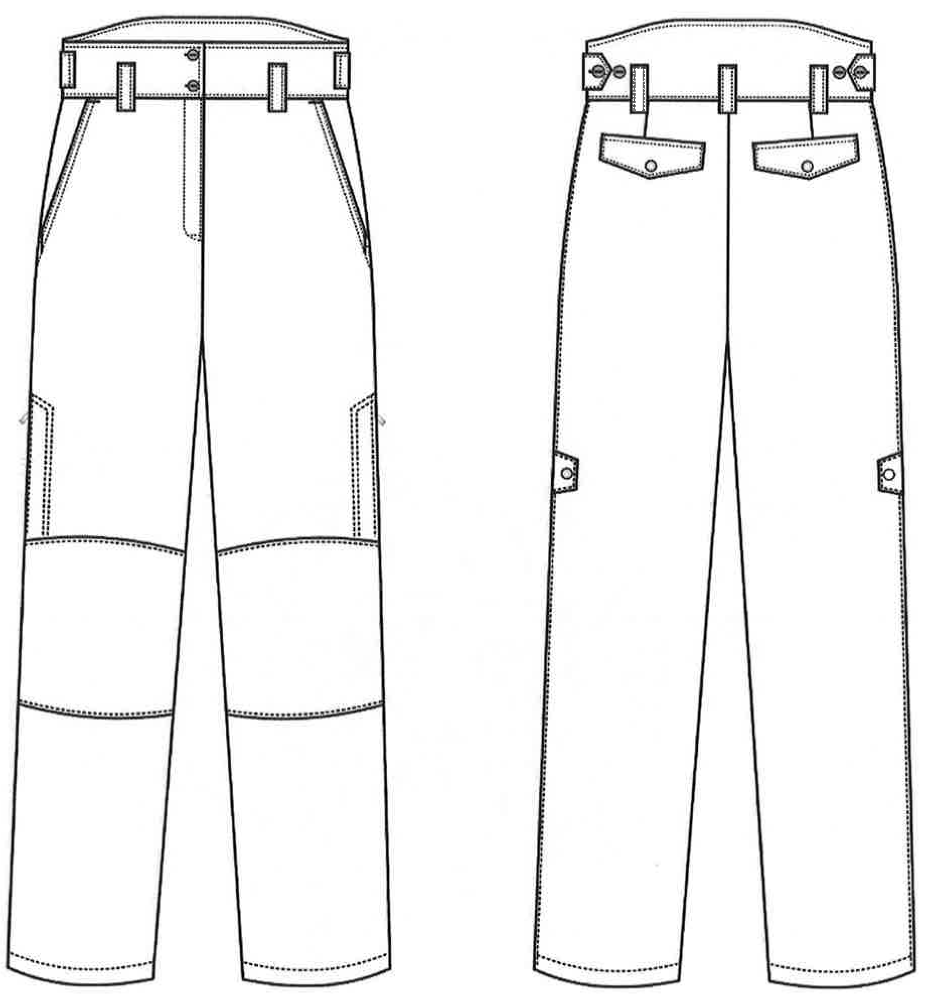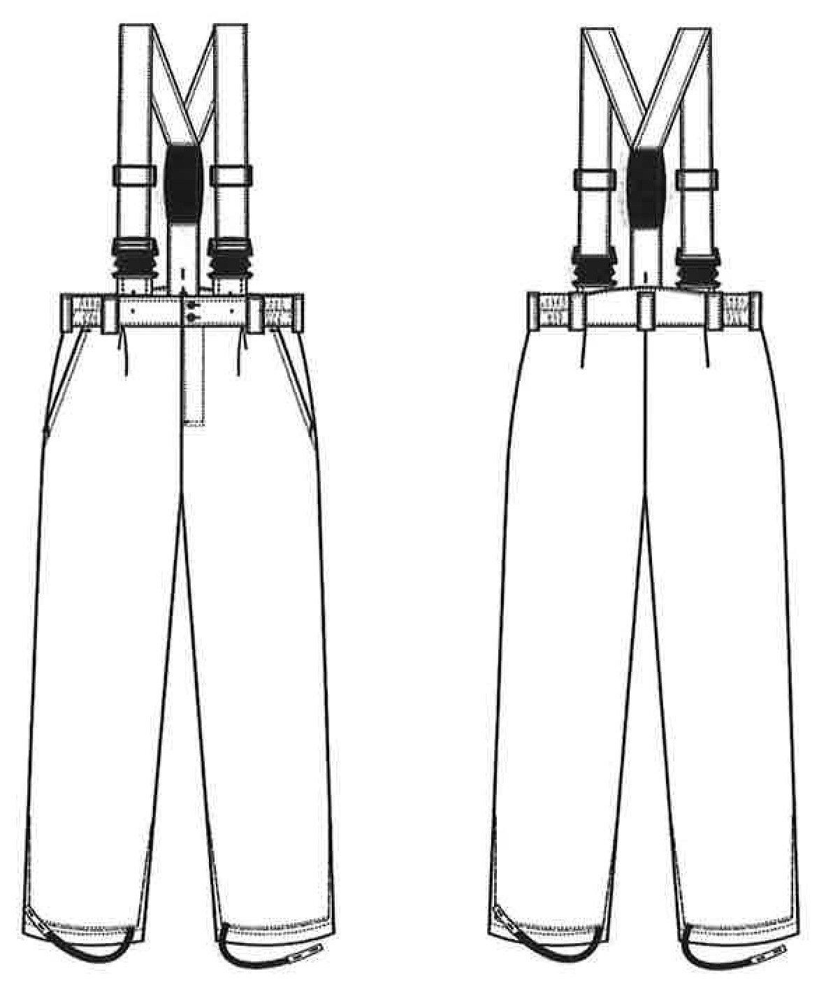 2.4. Брюки для защиты от пониженных температур (рисунок 22), утепленные, с застежкой-гульфиком на тесьму-молнию, с притачным поясом, застегивающимся на две пуговицы, съемными бретелями.