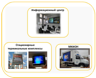 Для оповещения населения в районах с поврежденной инфраструктурой связи и электропитания применяются МКИОН, которые имеют возможность доводить до населения аудио и визуальную информацию.