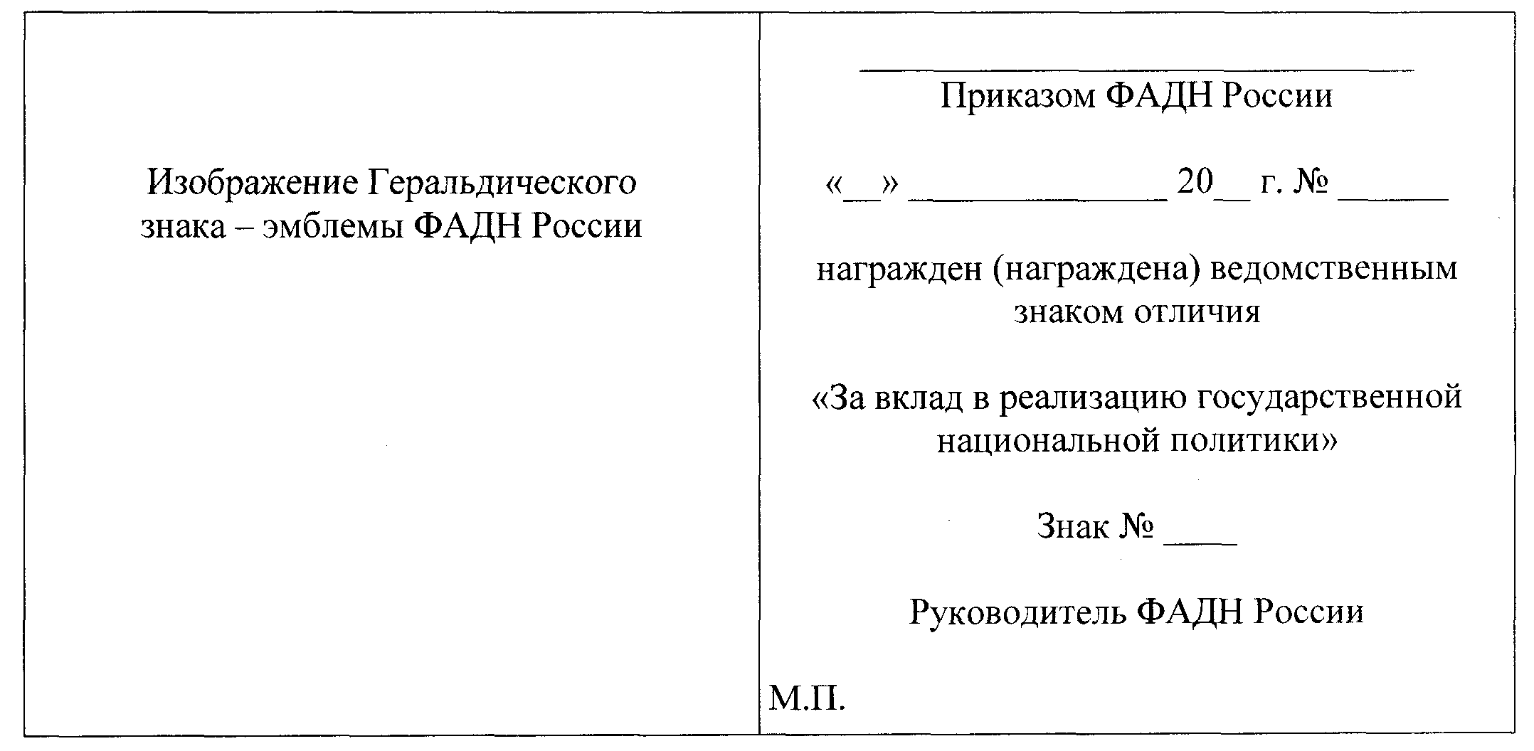 к ведомственному знаку отличия Федерального агентства по делам национальностей "За вклад в реализацию государственной национальной политики"