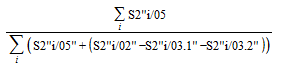 S2"i/05" - сумма операций (распоряжений) по переводу денежных средств, указываемая в графе 4 раздела 2 отчетности по форме 0403203, для которых используется код типа операций "i" и код вида операций "05";