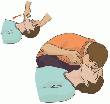 | 3. Восстановите проходимость дыхательных путей пострадавшего и определите признаки жизни (определите наличие нормального дыхания с помощью слуха, зрения и осязания). При наличии дыхания переходите к п. 6 Алгоритма. | |