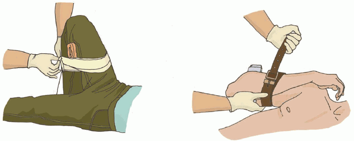 5) наложением жгута (табельного или импровизированного).