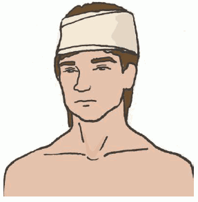 1) при травмах головы - остановить кровотечение прямым давлением на рану, наложить повязку.