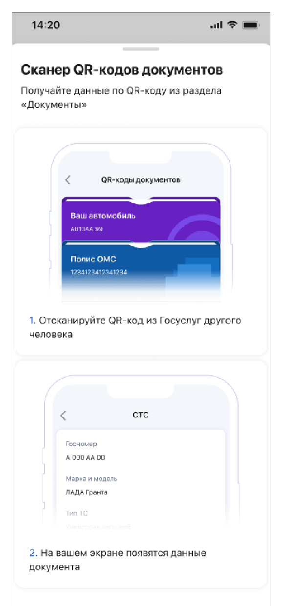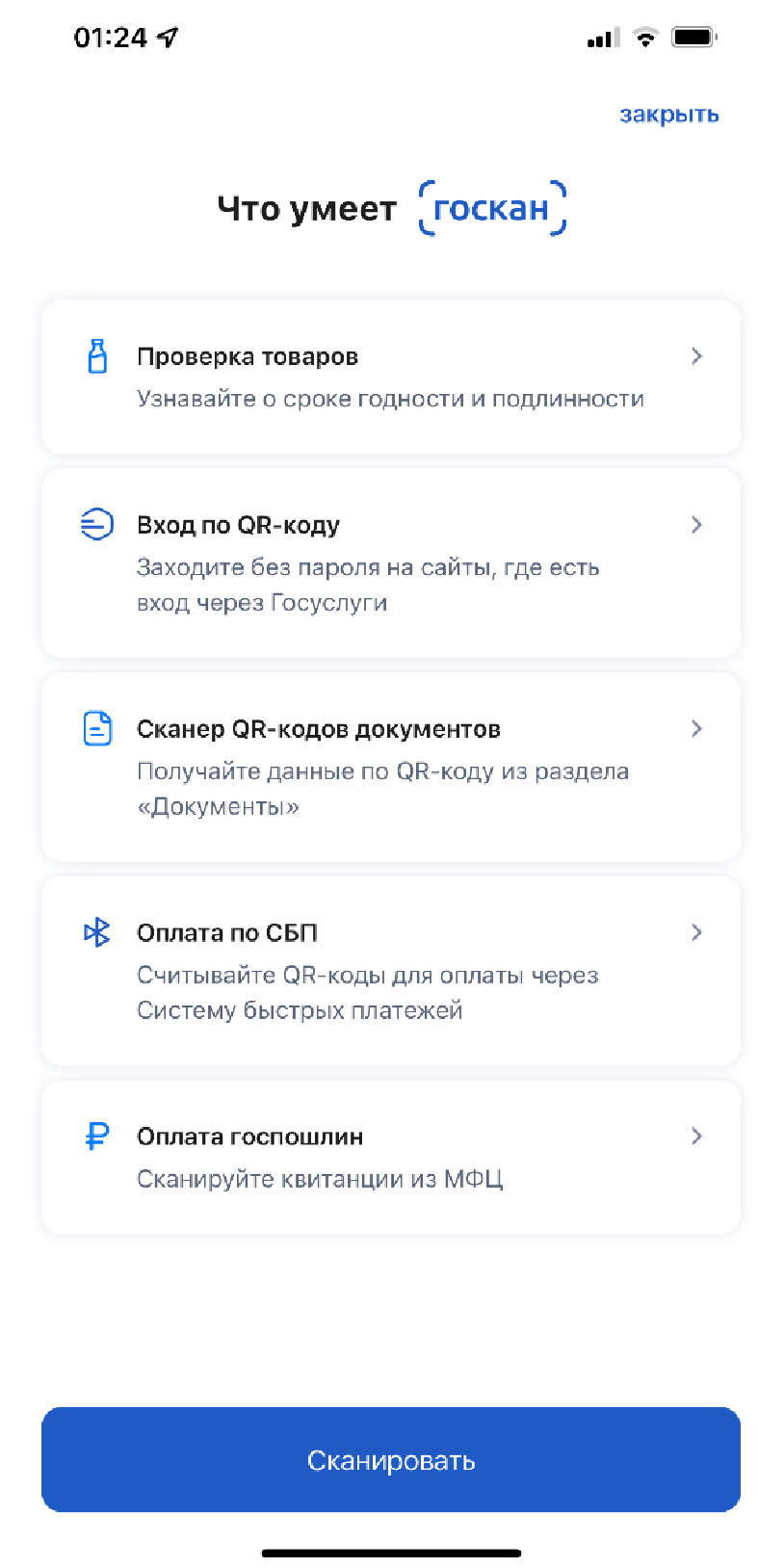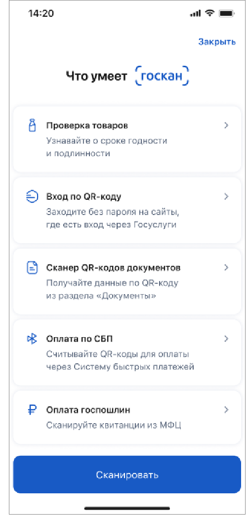 Рисунок 12 - Пример информационного экрана с описанием возможностей сканера "Госкан"