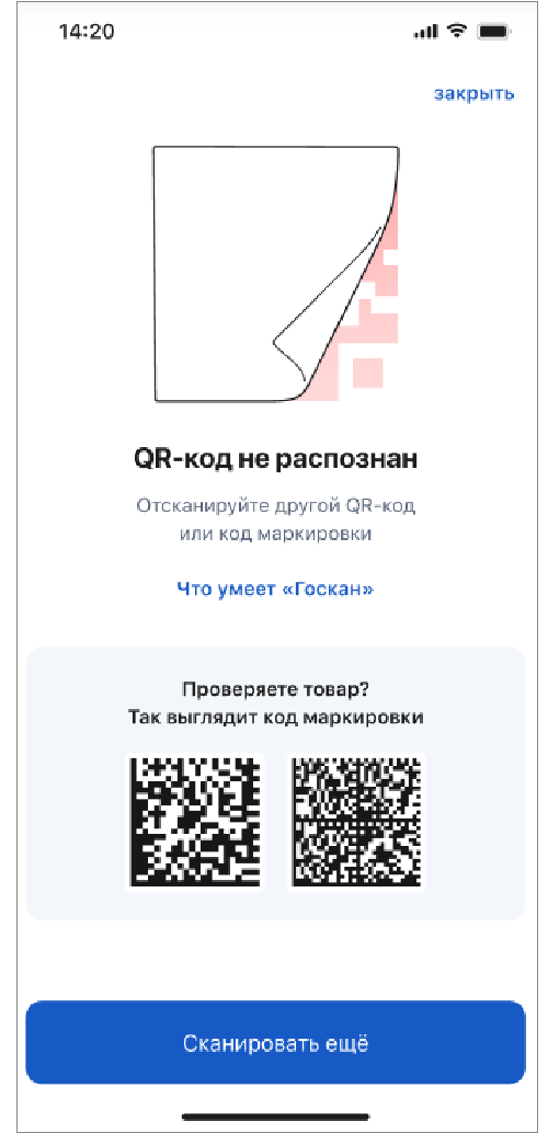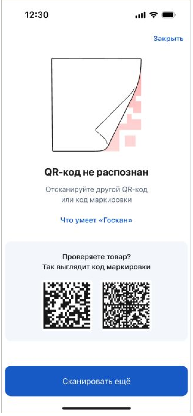 Рисунок 14 - Пример экрана ошибки сканирования QR-кода