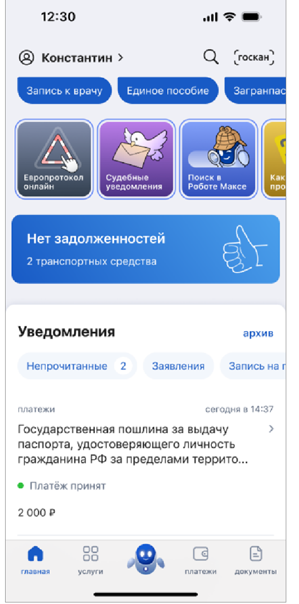 3. Установленное на смартфон мобильное приложение "Госуслуги"