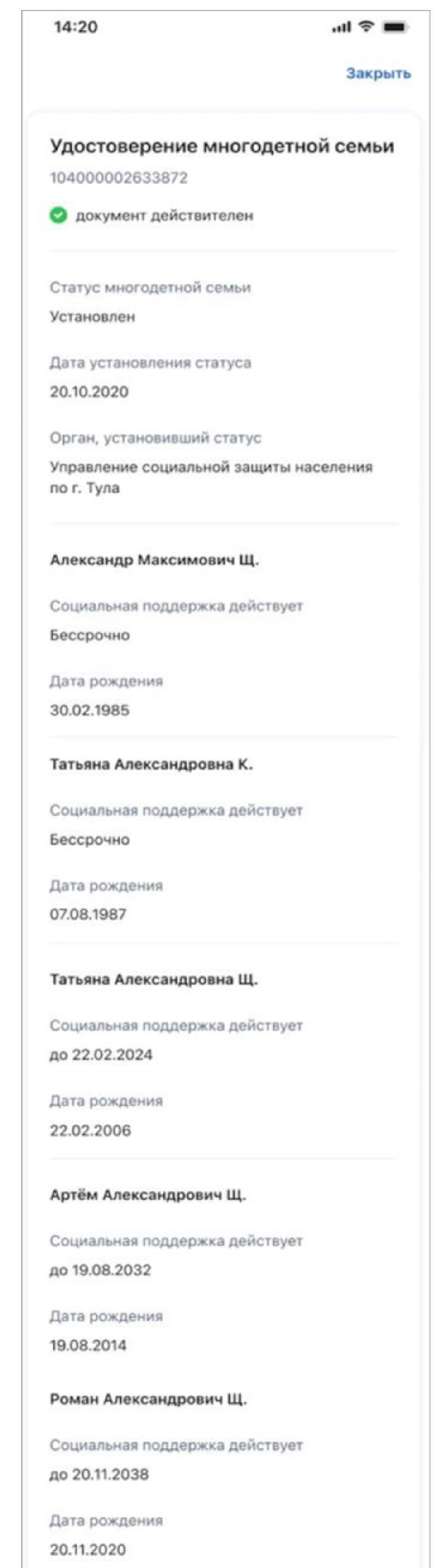 Рисунок 15 - Электронное удостоверение многодетной семьи