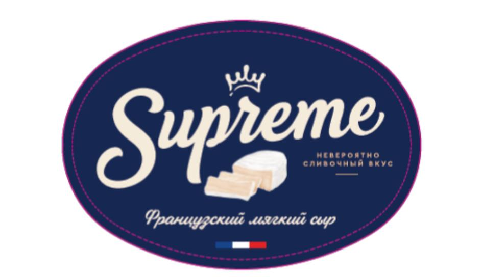 Суд первой инстанции установил, что в состав спорного обозначения входят словесные элементы "Supreme", "Французский мягкий сыр", "НЕВЕРОЯТНО СЛИВОЧНЫЙ ВКУС", изобразительные элементы в виде короны, сыра и прямоугольной фигуры, разделенной на синий, белый и красный секторы.