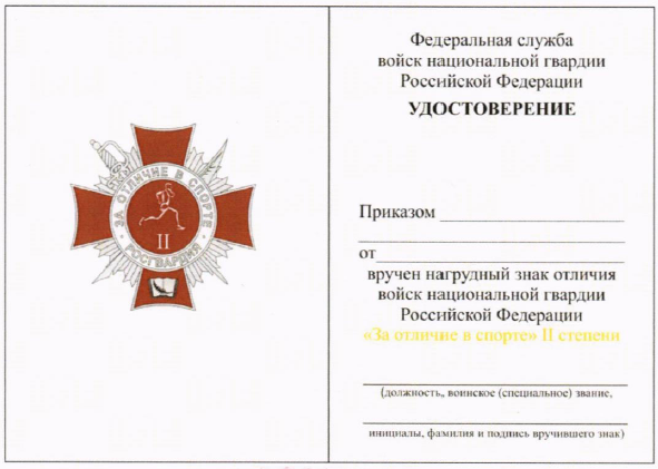 В войсках нацгвардии учрежден нагрудный знак "За отличие в спорте" I, II и III степени.