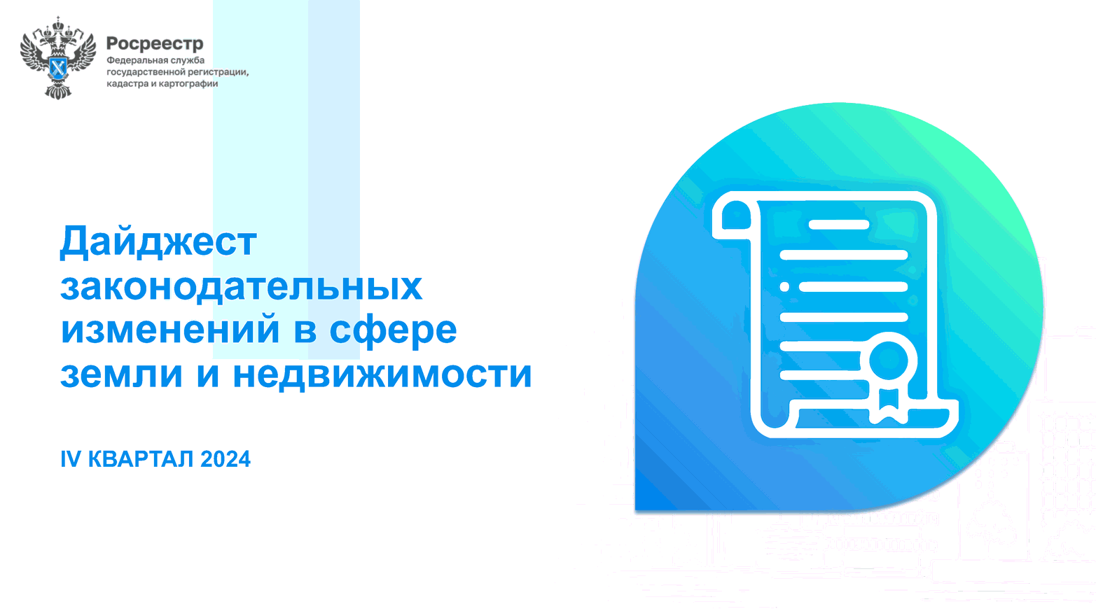 "Росреестр подготовил дайджест законодательных изменений в сфере земли и недвижимости за IV квартал 2024 года"