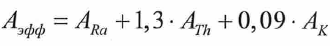 Эффективная удельная активность природных радионуклидов Аэфф - это интегральная характеристика внешнего гамма-излучения материальных сред, учитывающая удельный вклад содержащихся в ней природных радионуклидов в мощность дозы гамма-излучения и определяемая по формуле (15):