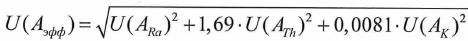 Для результата расчета эффективной удельной активности ПРН Аэфф по формуле (1) суммарная неопределенность22 U(Аэфф) рассчитывается по формуле (2):