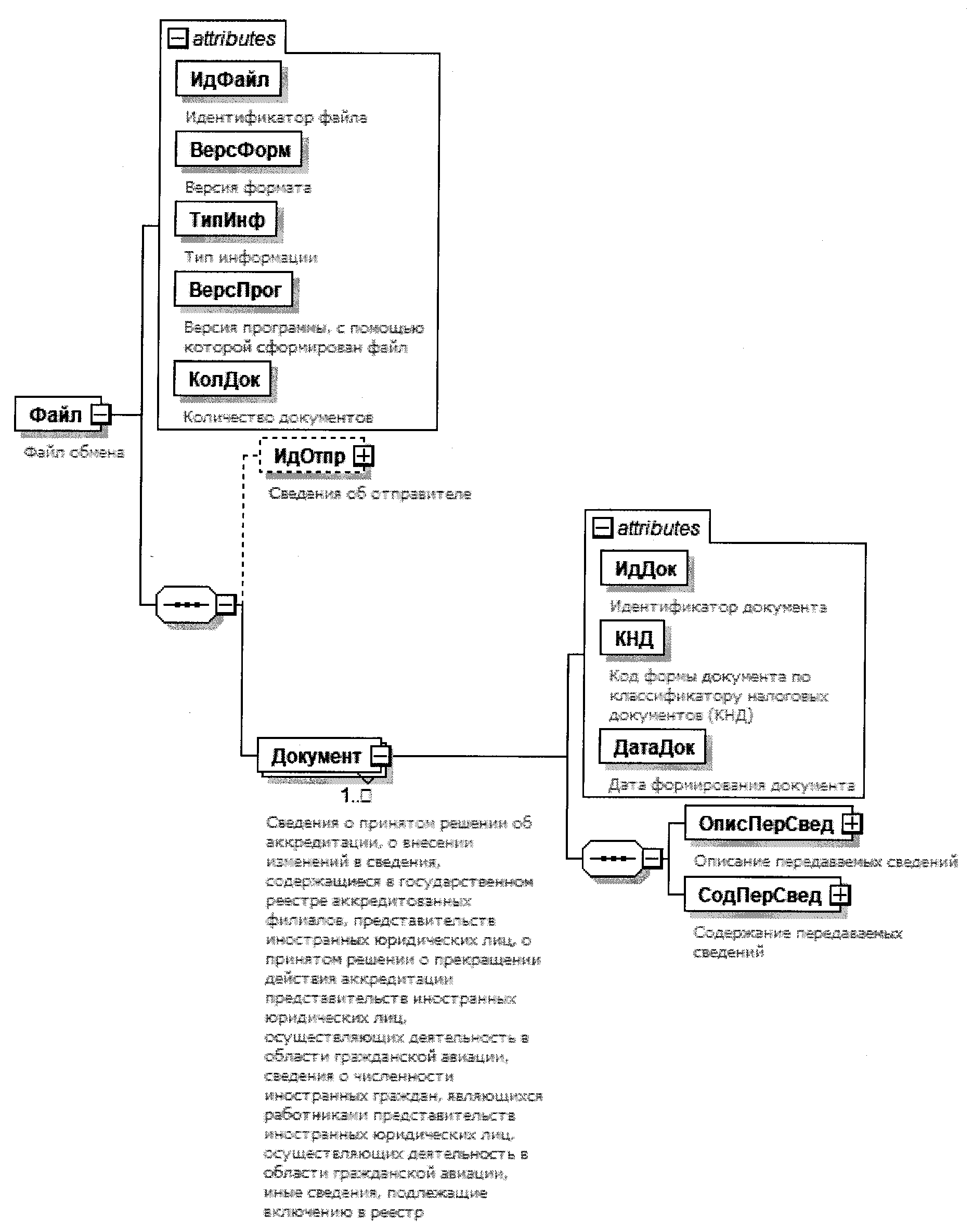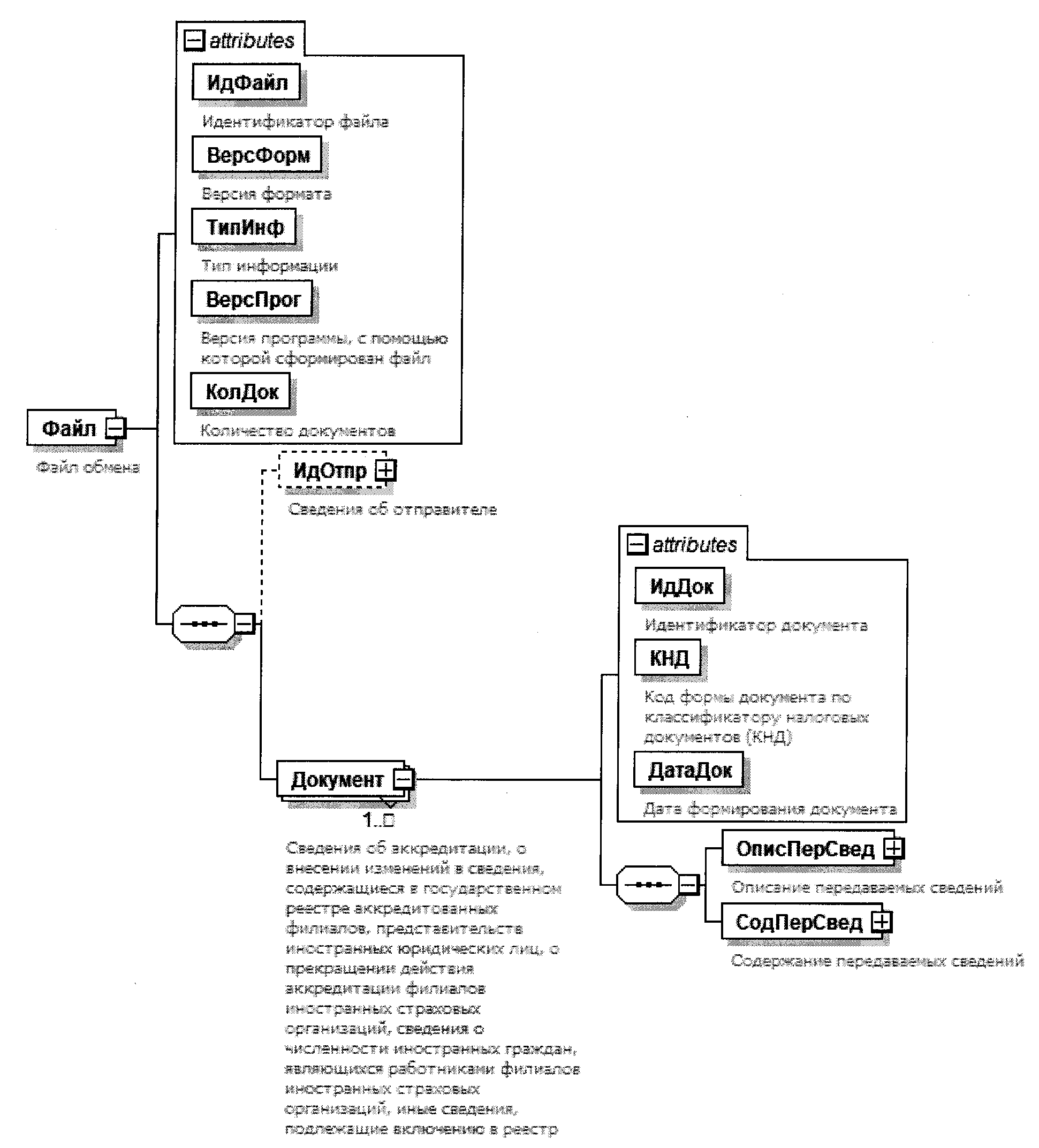 | Сведения о принятом решении об аккредитации филиала иностранного юридического лица | СвАккред | С | О | Состав элемента представлен в таблице 4.12 |