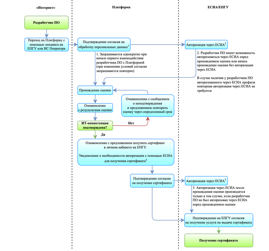 6.3. Для получения сертификата ИТ-компетенции в личном кабинете на ЕПГУ разработчику ПО необходимо дать согласие на формирование в личном кабинете на ЕПГУ сертификата ИТ-компетенций, а также согласие на обработку персональных данных на платформе и получить сертификат ИТ-компетенций по результатам прохождения оценки на платформе.