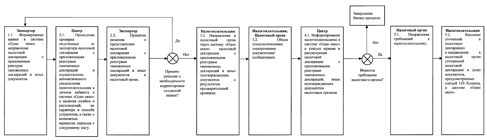 Описание целевого бизнес-процесса проверки обоснованности применения налоговой ставки 0 процентов по налогу на добавленную стоимость в отношении операций по реализации товаров, вывезенных в таможенной процедуре экспорта, в части формирования пакета документов (информации, сведений) для подачи в налоговый орган, проведения предварительной проверки правильности заполнения налоговой декларации (форматно-логический контроль), получения информации о результатах предварительной проверки, подачи пакета документов (информации, сведений) в налоговый орган по телекоммуникационным каналам связи через оператора электронного документооборота, обмена информацией (документами) в рамках камеральной проверки с использованием телекоммуникационных каналов связи оператора электронного документооборота