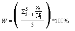 в) оценивает показатель востребованности налоговой льготы (W) за 5-летний период по следующей формуле: