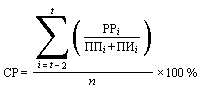 "14.1.3. Значение показателя "Рентабельность активов за последние 3 отчетных периода" (РА) рассчитывается на конец отчетного периода по формуле (используется среднее арифметическое значение за последние 3 отчетных периода):