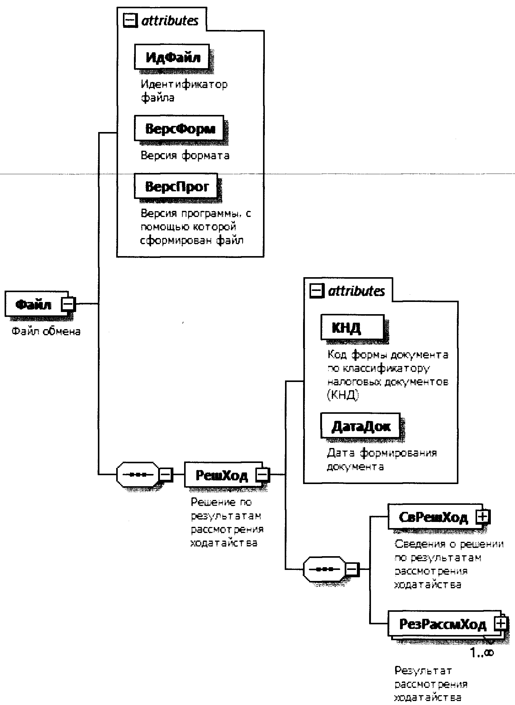 | Решение по результатам рассмотрения ходатайства | РешХод | С | О | Состав элемента представлен в таблице 4.2 |